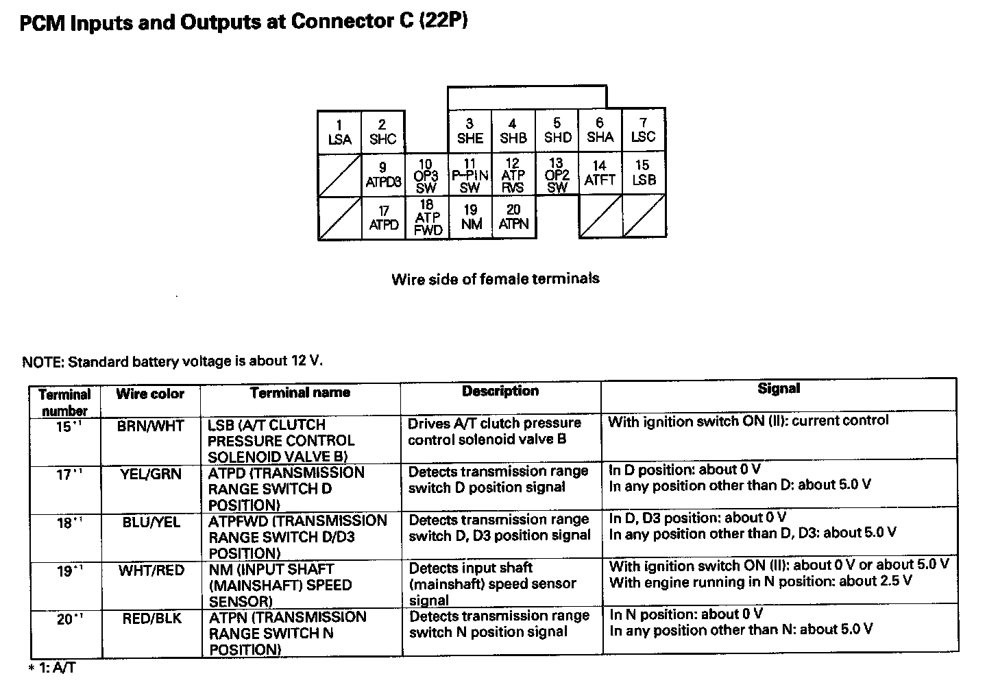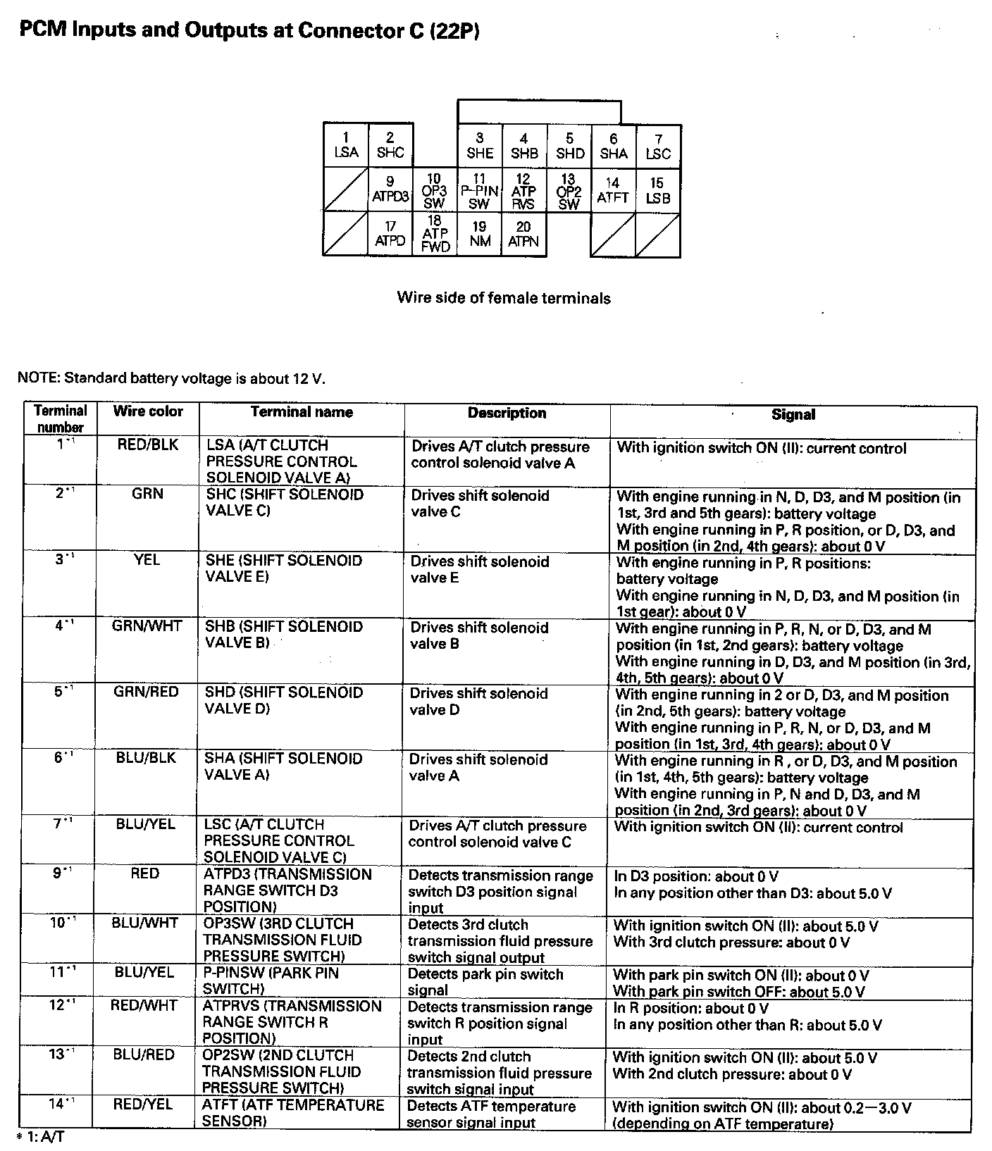 ECM/PCM Inputs And Outputs At Connector C (22P) Part 1: