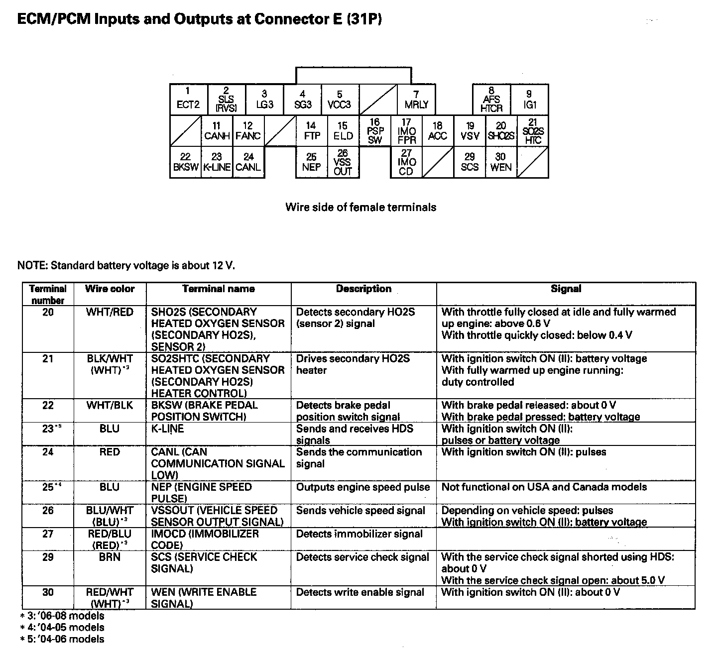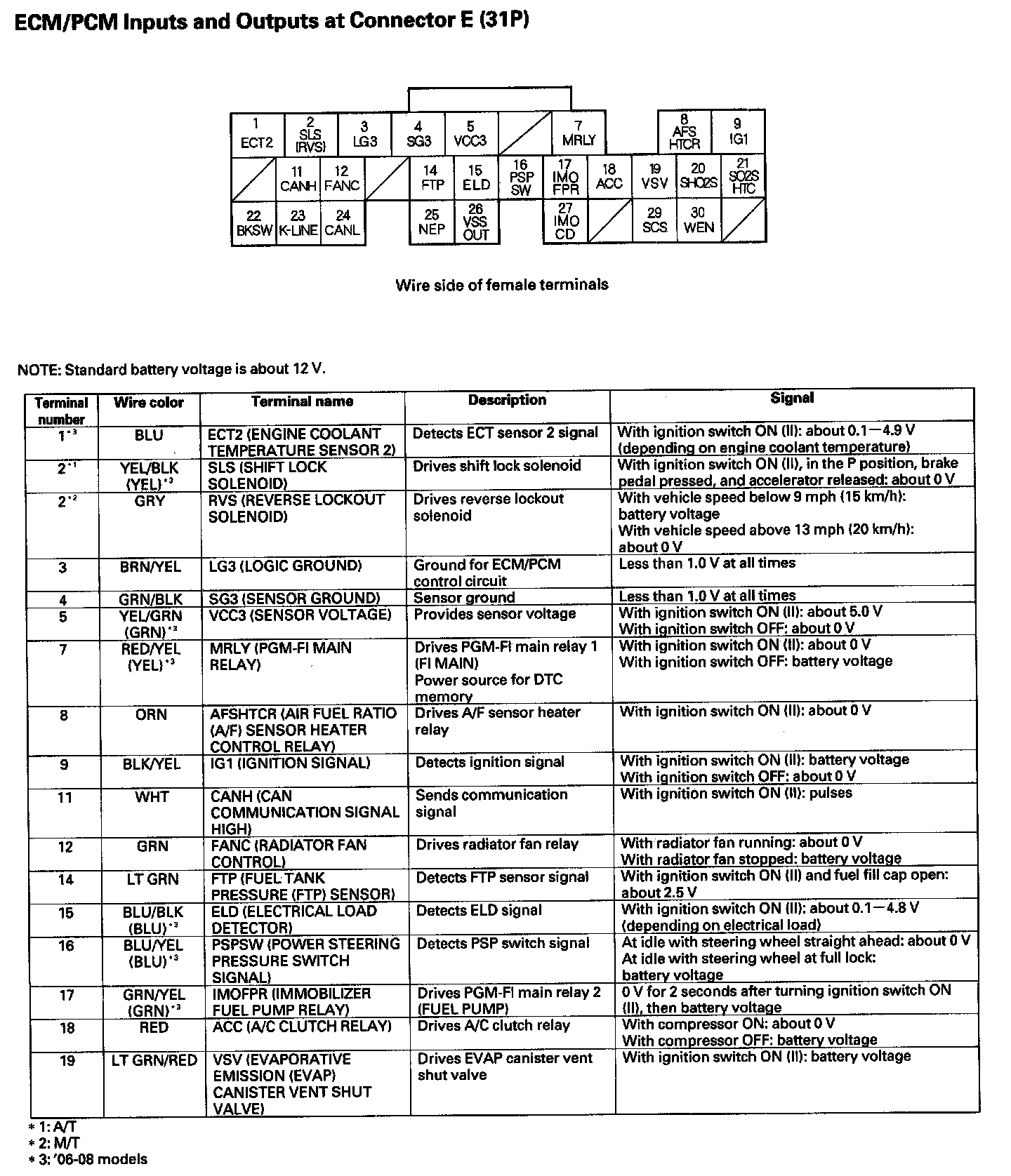 ECM/PCM Inputs And Outputs At Connector E (31P) Part 2:
