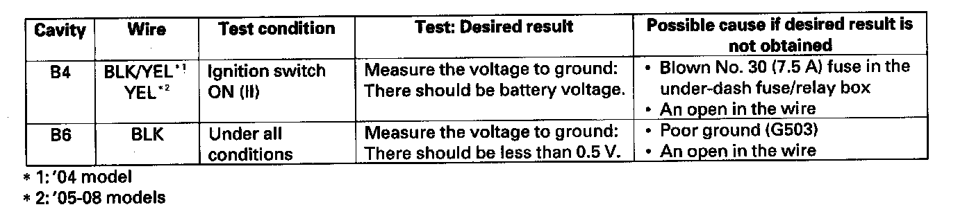 4. Reconnect the connector to the audio-HVAC display panel, and make these input tests at the connector.