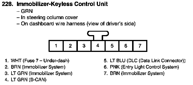 View 228 Immobilizer-Keyless Control Unit Connector View
