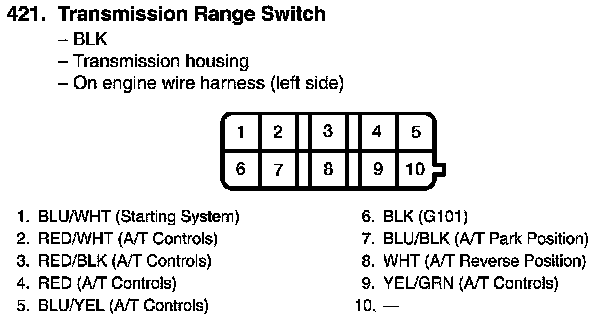 Transmission Range Switch Connector View