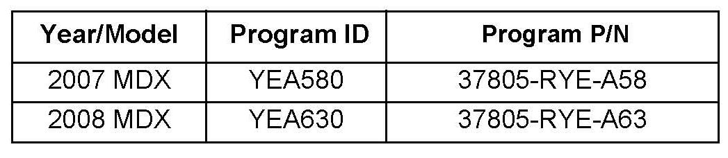 12. 2007-08 MDX: Make sure the vehicle has the following software (or later) loaded. If it doesn't, update the PGM-FI software.