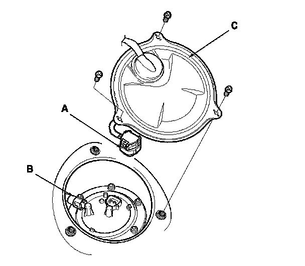 6. Disconnect the quick-connect fitting (C) from the fuel tank unit.