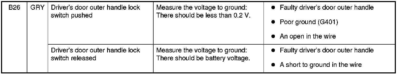 6. Reconnect the connectors to the keyless access control unit, and do these input tests at the following connectors.