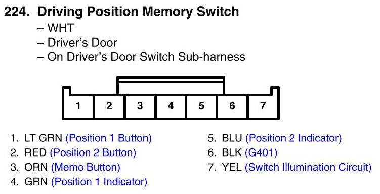 View 224 - Driving Position Memory Switch Connector View