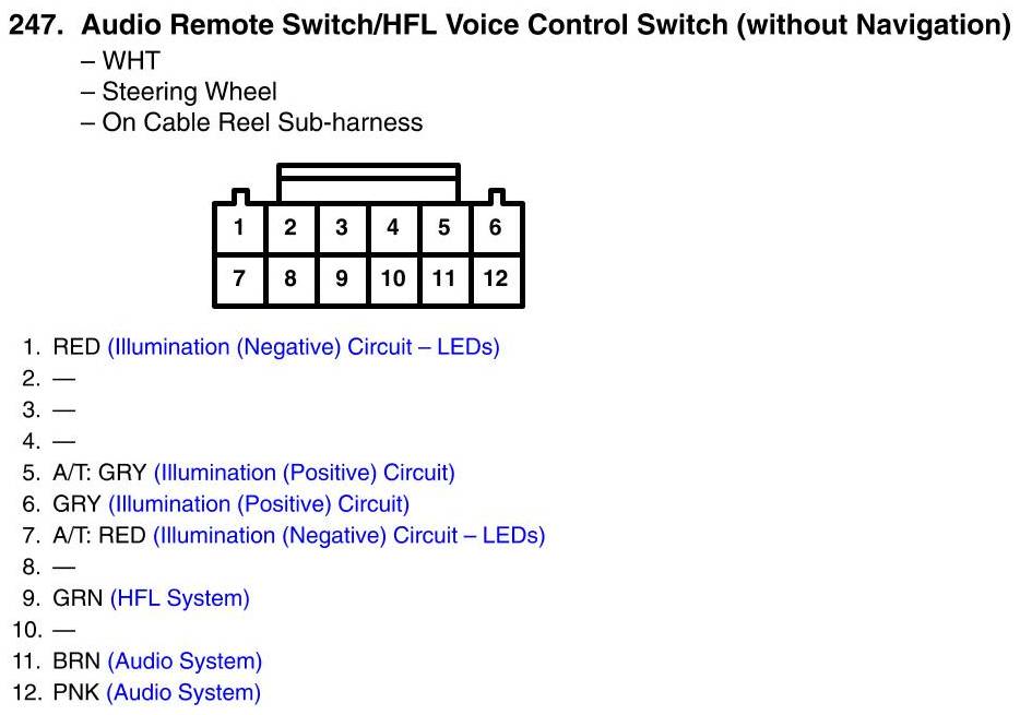 Audio Remote Switch/HFL Voice Control Switch Connector View (Without Navigation)