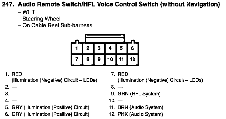 Audio Remote Switch/HFL Voice Control Switch Connector View (Without Navigation)