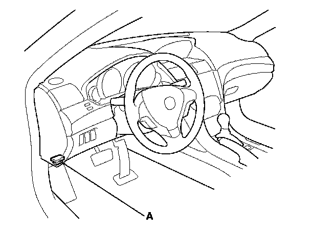 2. Connect the HDS to the data link connector (DLC) (A) located under the driver's side of the dashboard.
