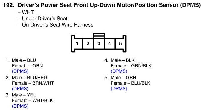 View 192 - Driver's Power Seat Front Up-Down Motor/Position Sensor Connector View (DPMS)