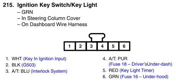 View 215 - Ignition Key Switch/Key Light Connector View