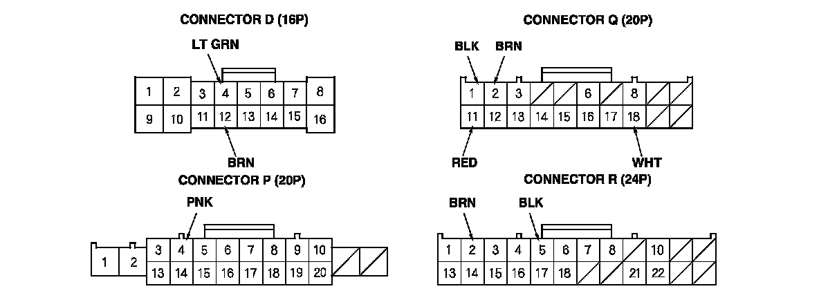 3. Disconnect driver's under-dash fuse/relay box connectors D, P, Q, and R.