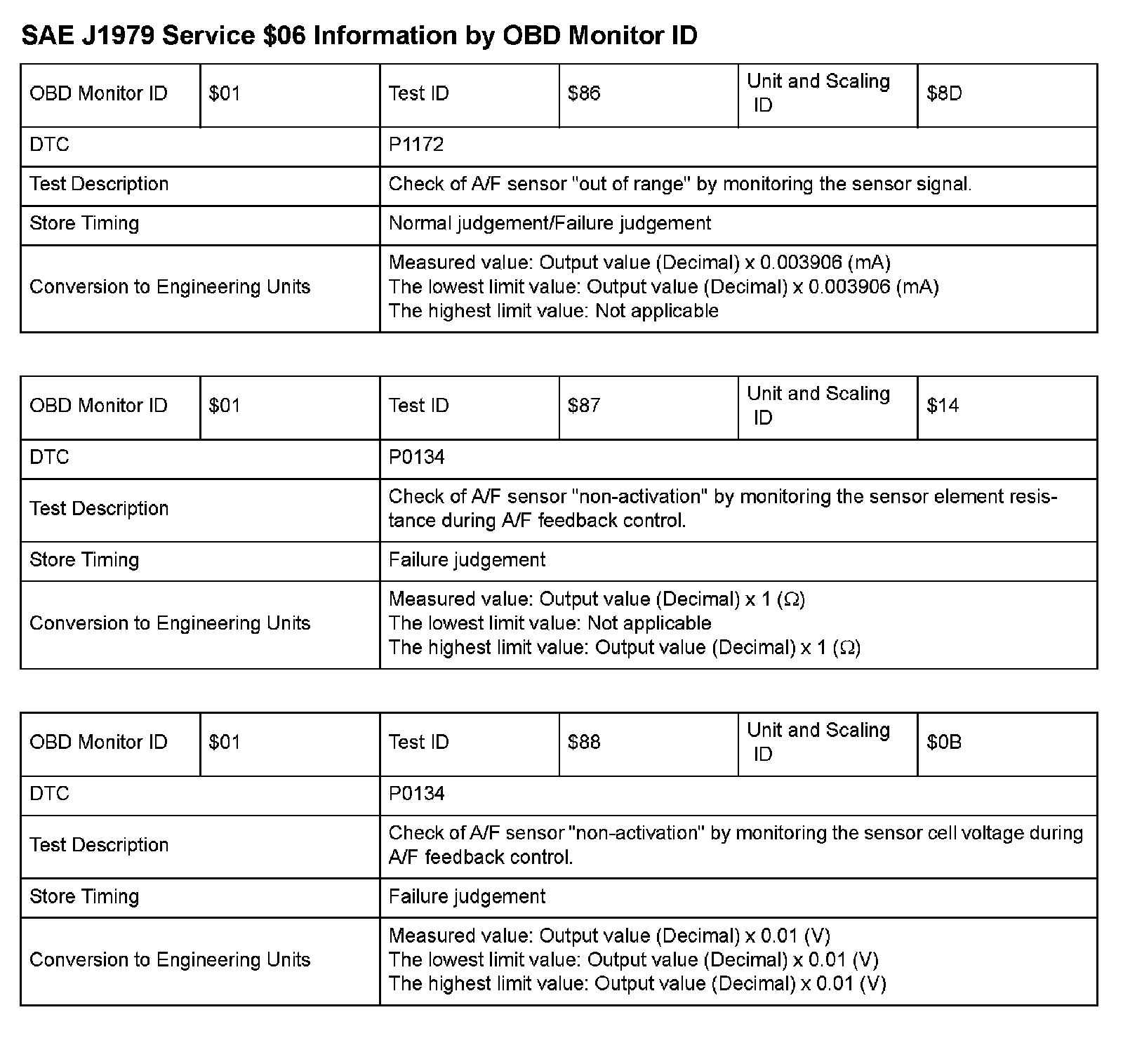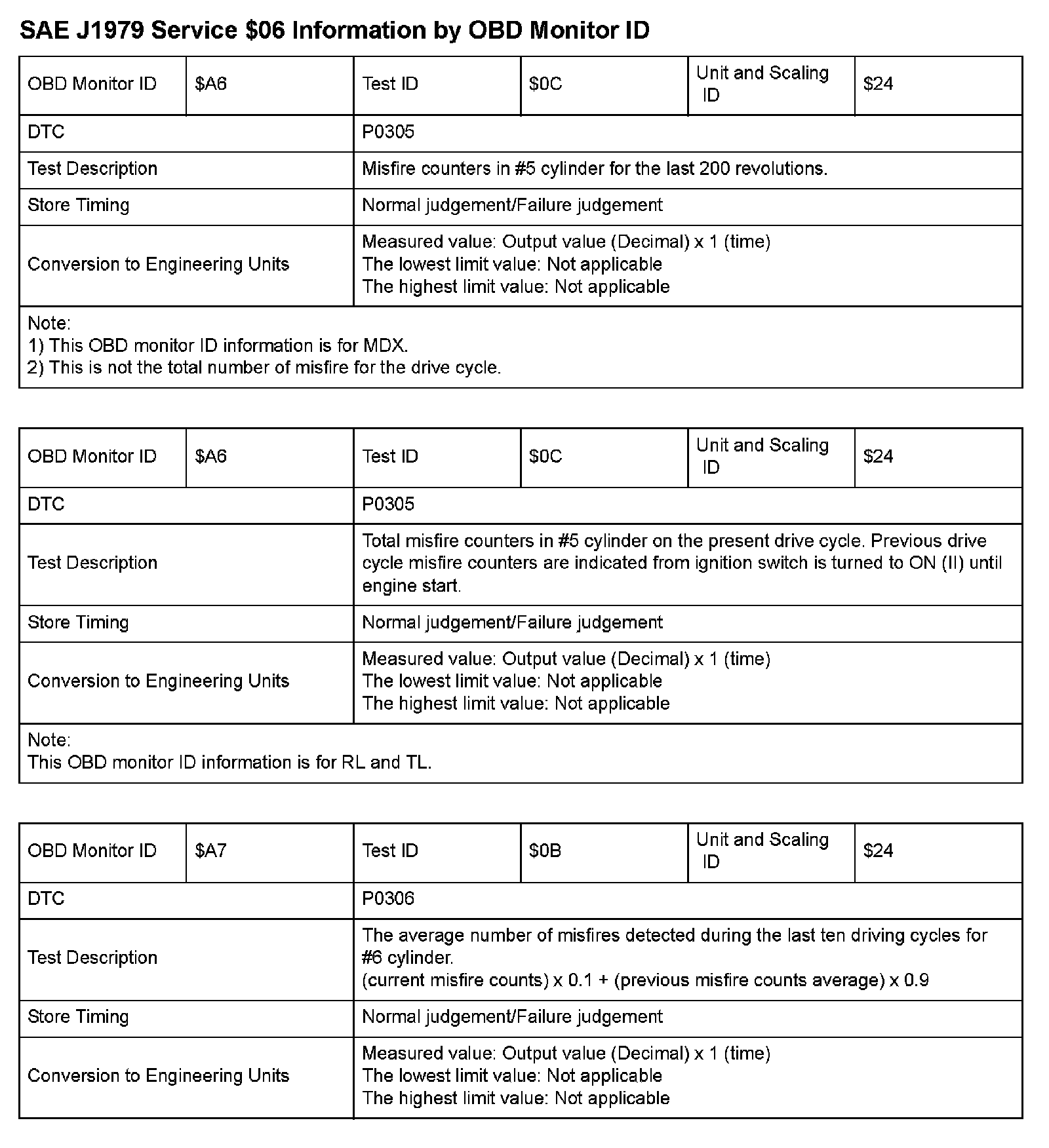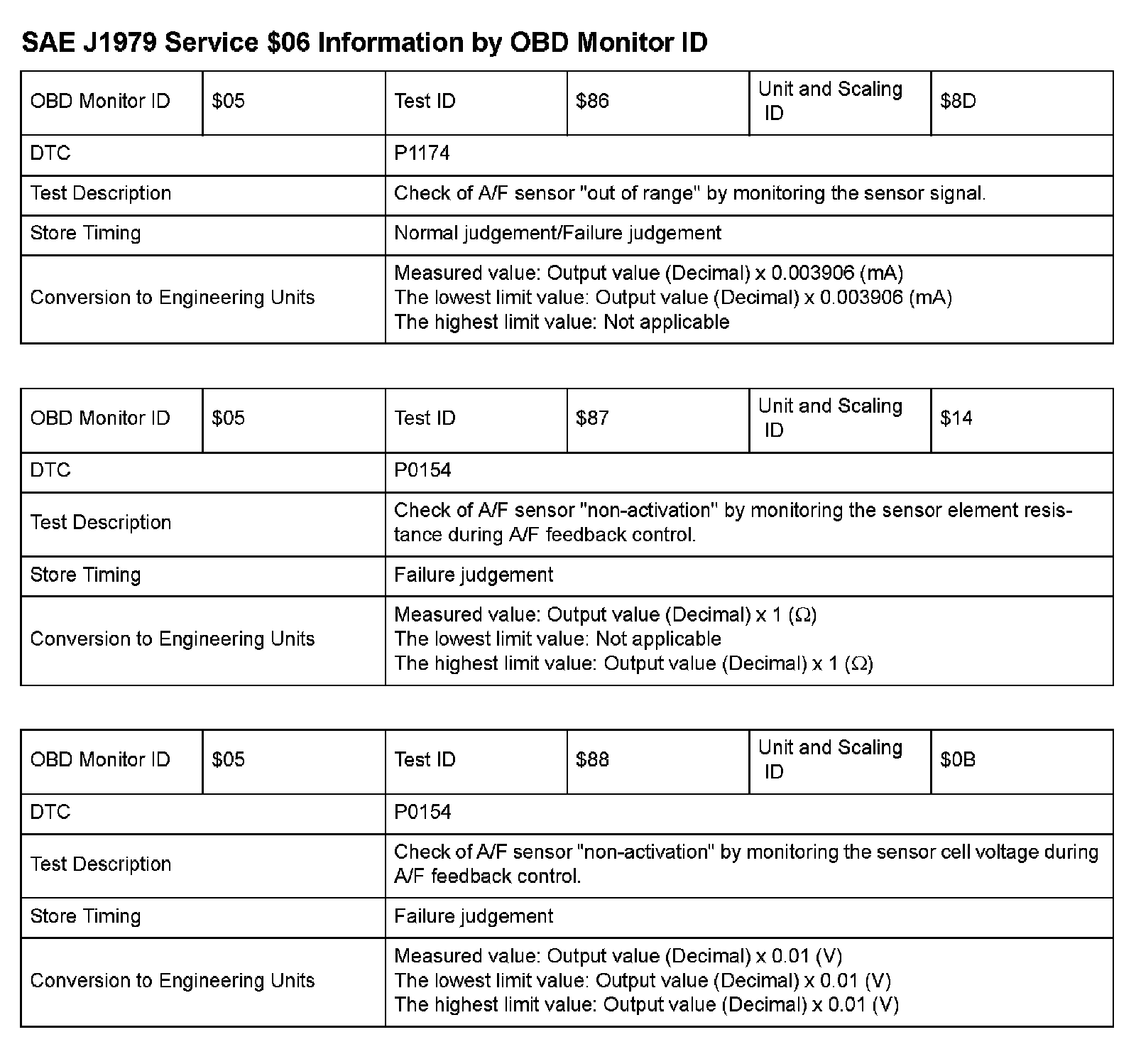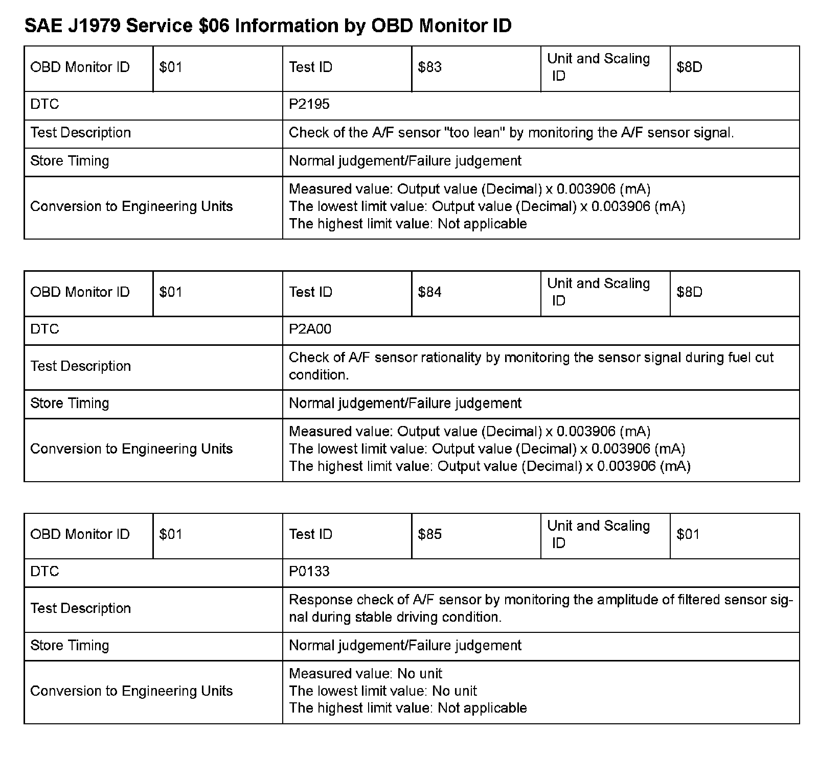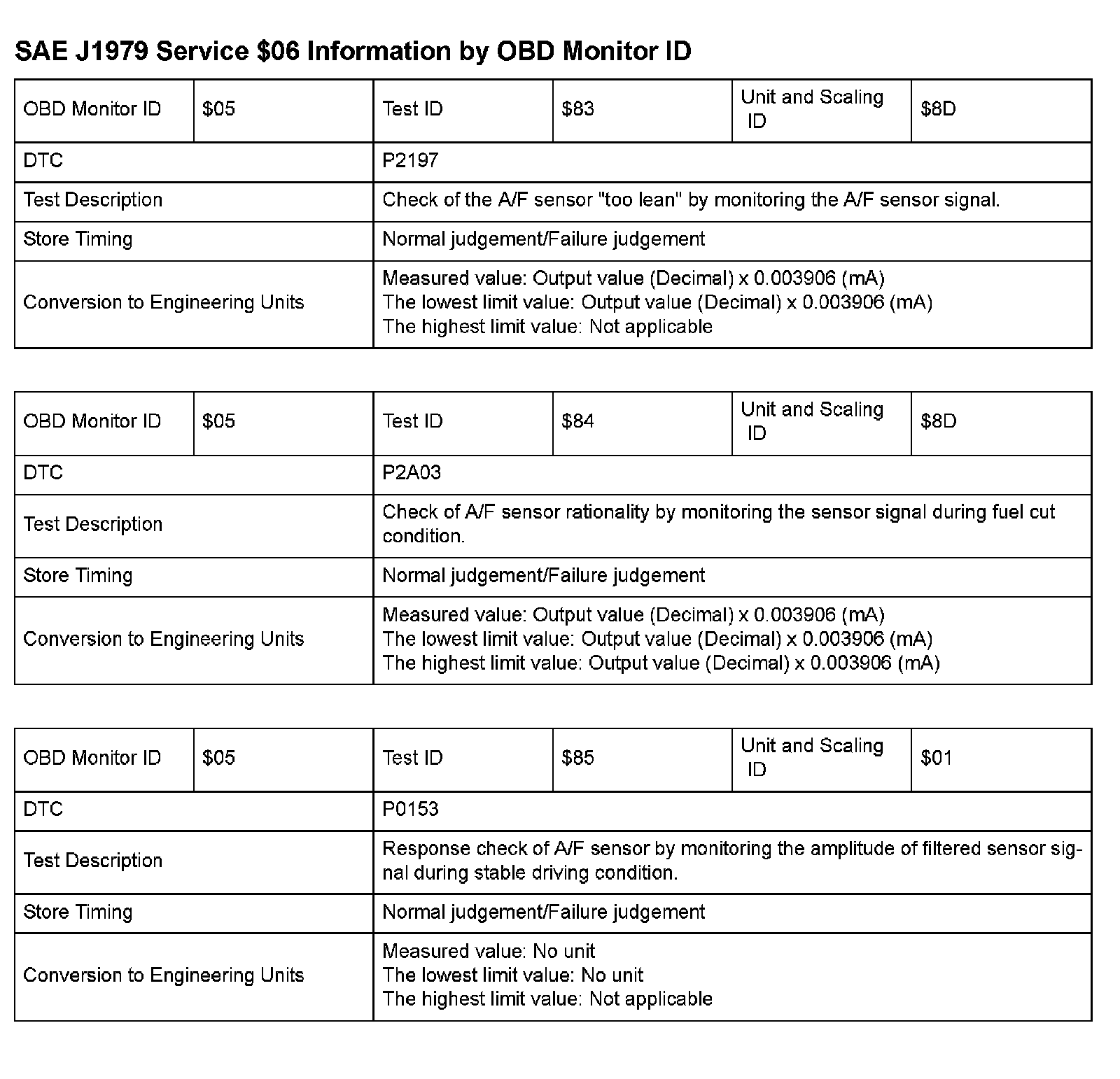 MODE 06 DATA CHARTS