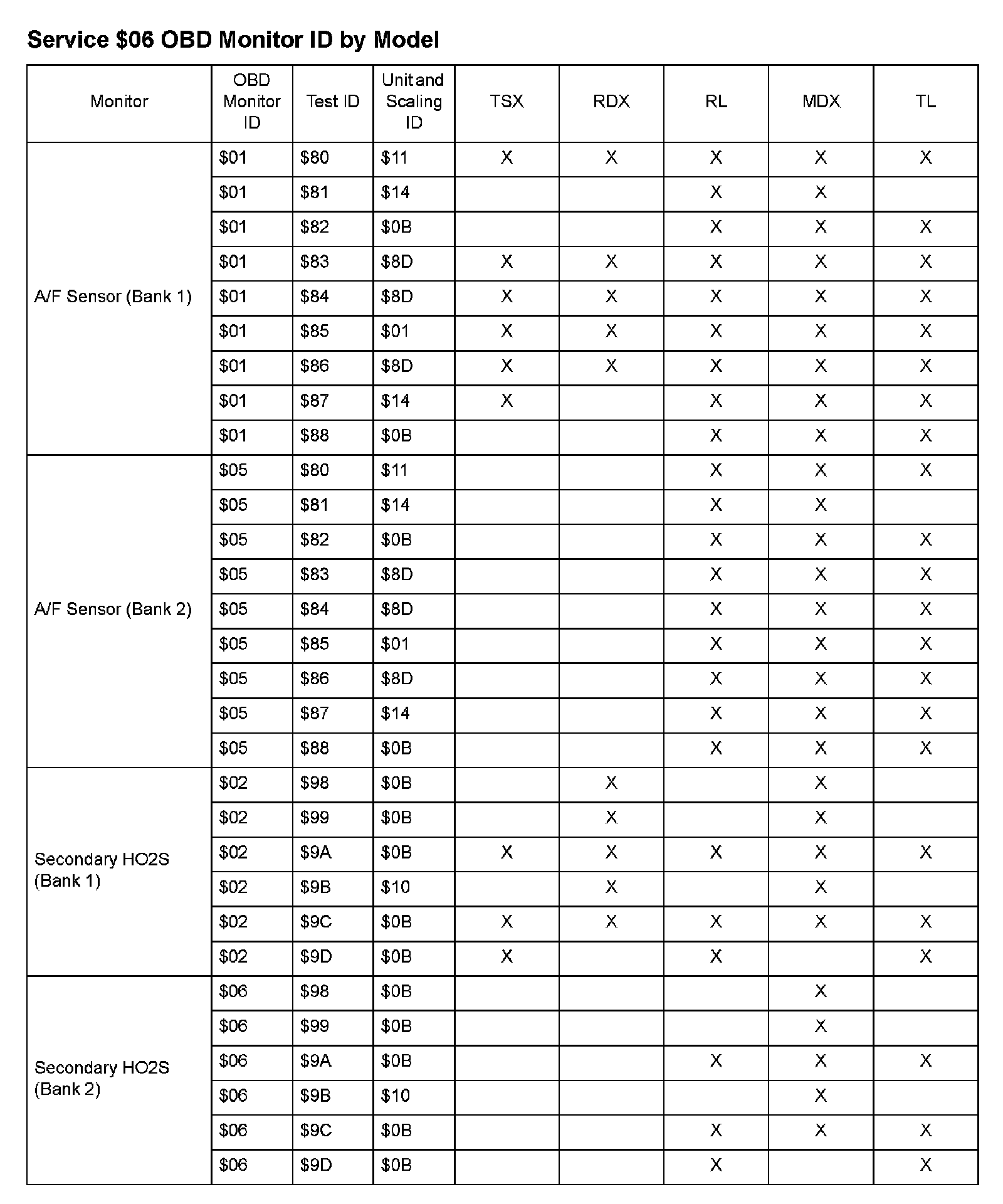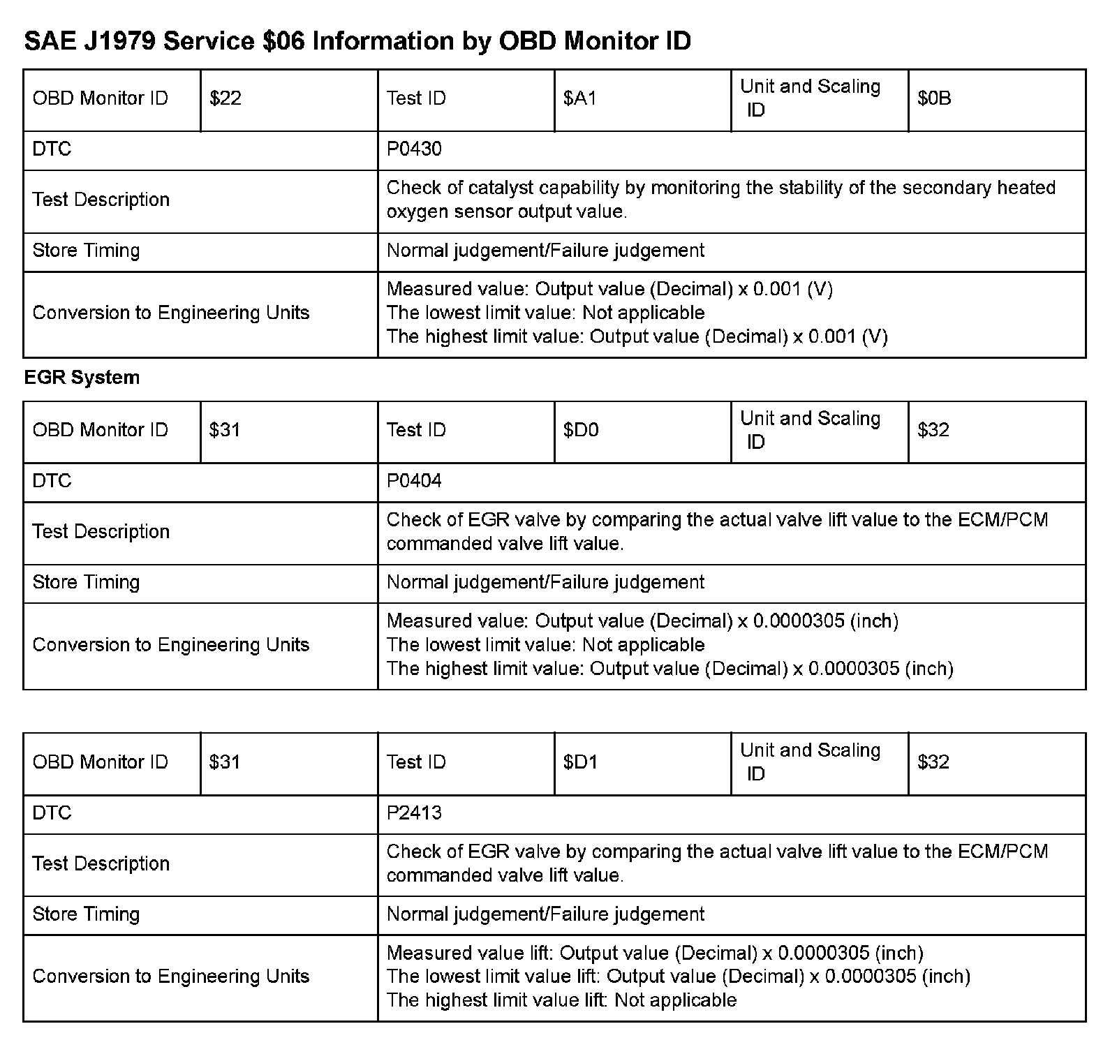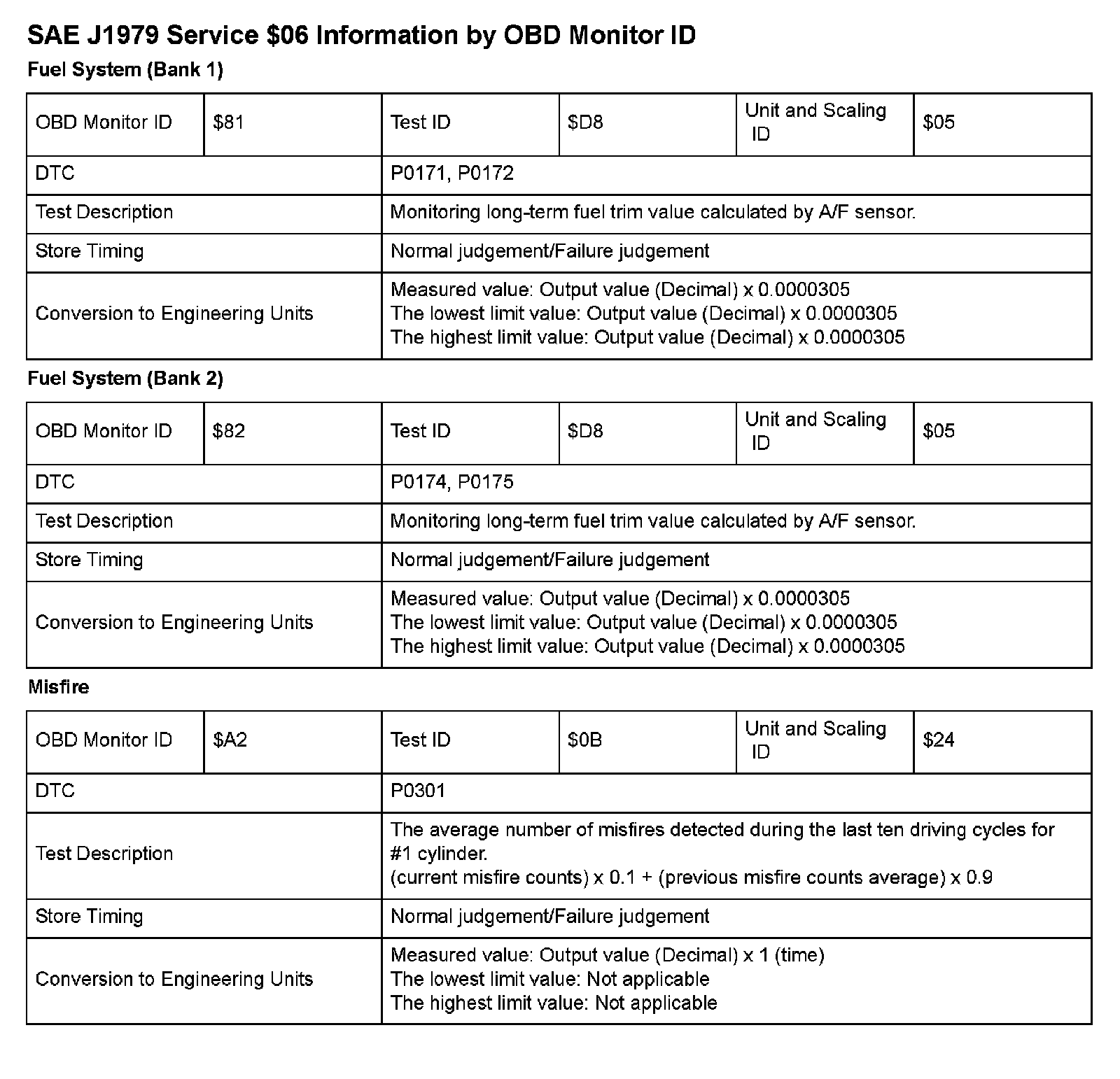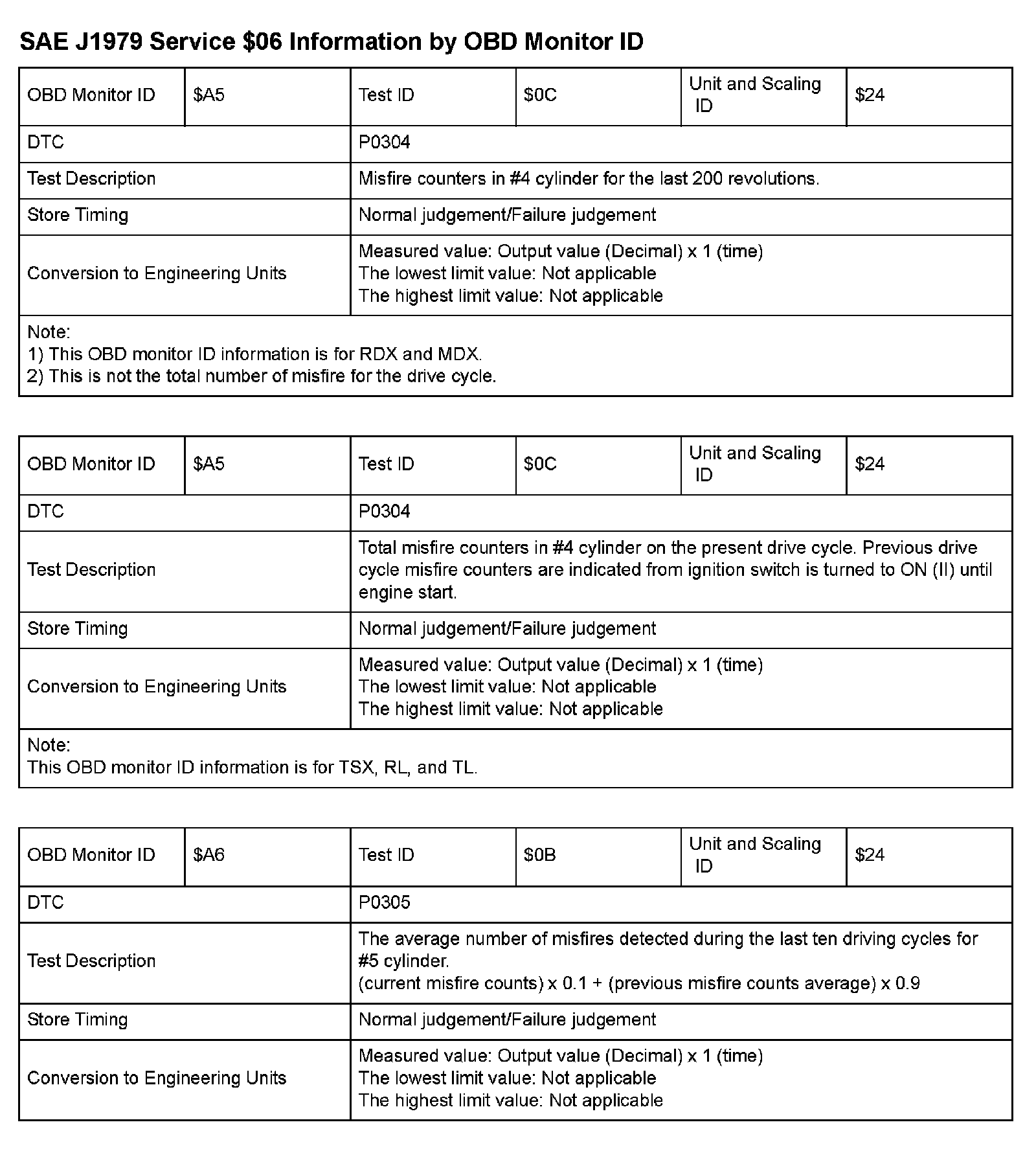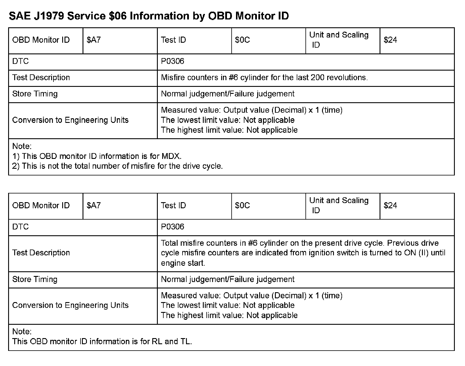 MODE 06 DATA CHARTS