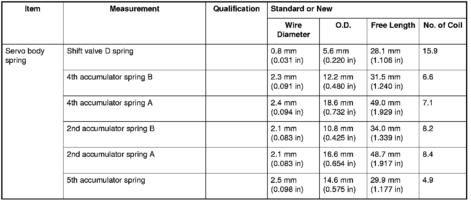 Servo Body Spring Specifications (A/T)