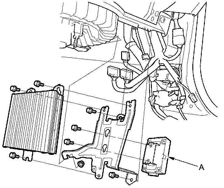 3. Remove the bolts from the bracket that hold the ACC unit (A).