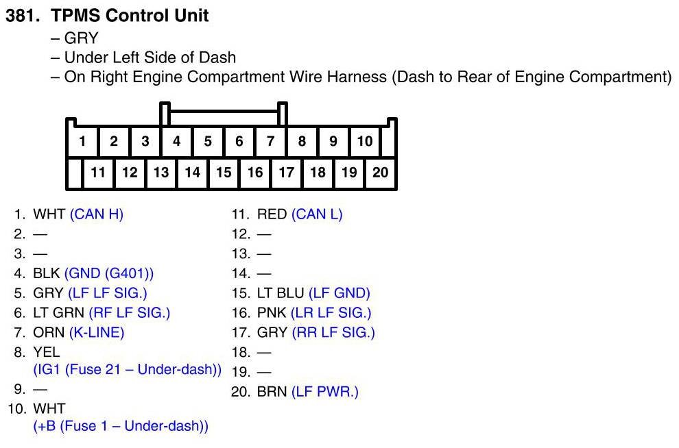 View 381 - TPMS Control Unit Connector View