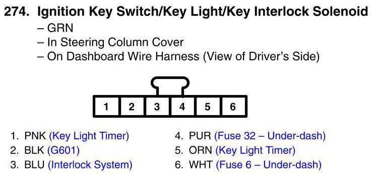 Ignition Key Switch/Key Light/Key Interlock Solenoid Connector View