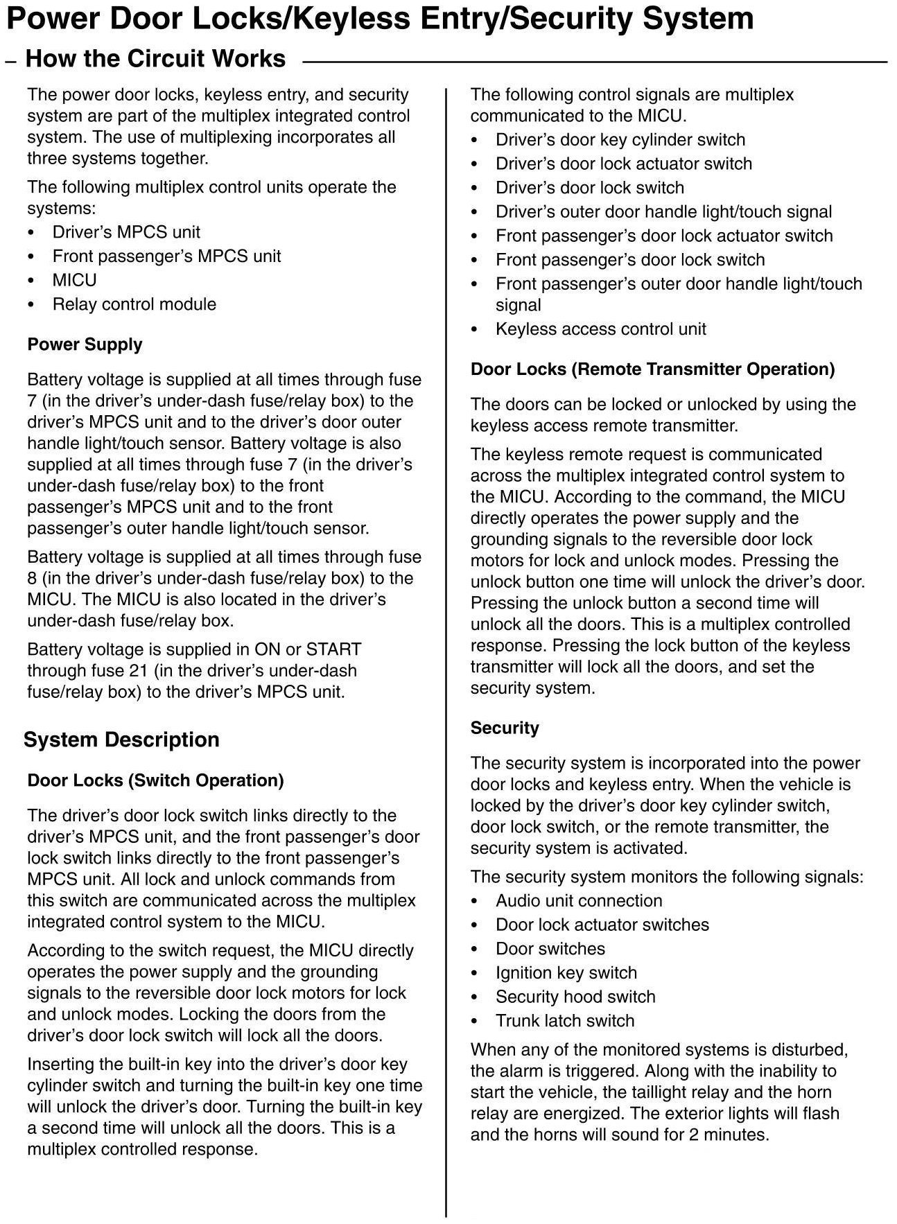 How The Power Door Locks/Keyless Entry/Security System Circuit Works