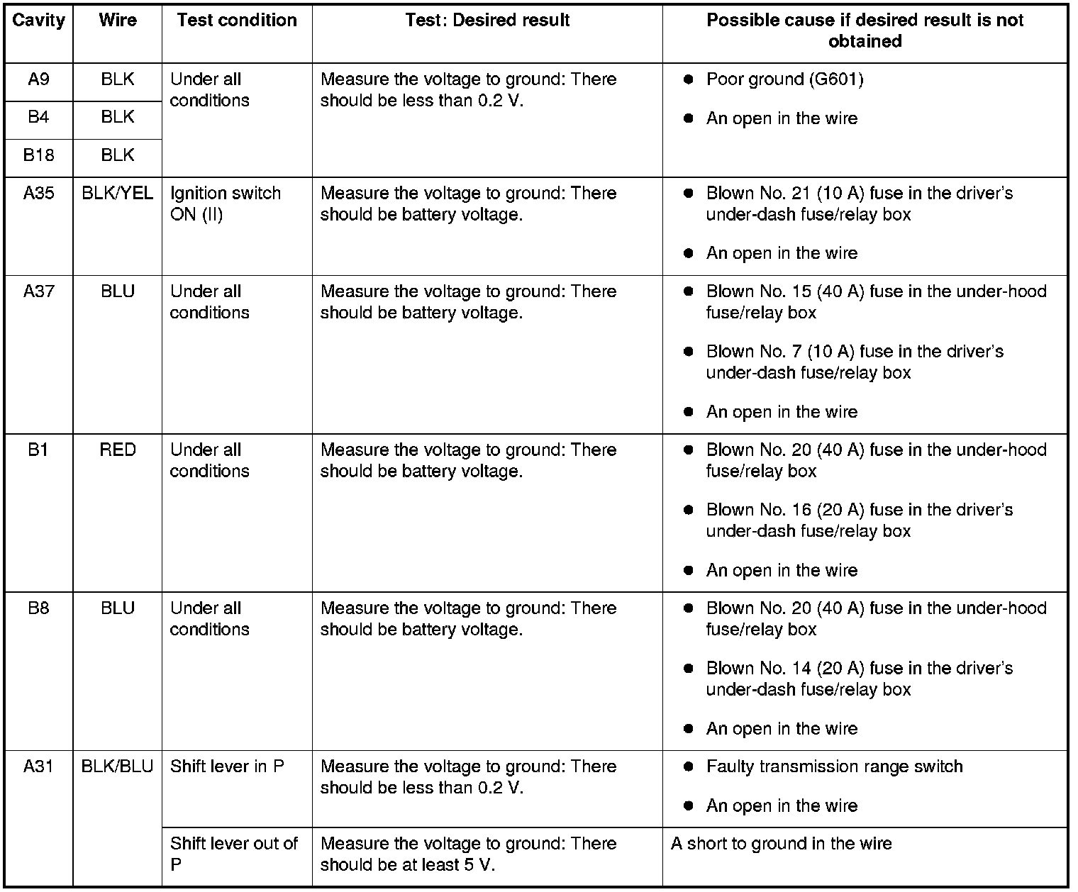 - If all the input tests prove OK, the control unit must be faulty; replace it.