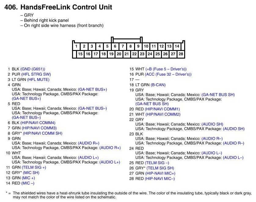 View 406 - HandsFreeLink Control Unit Connector View