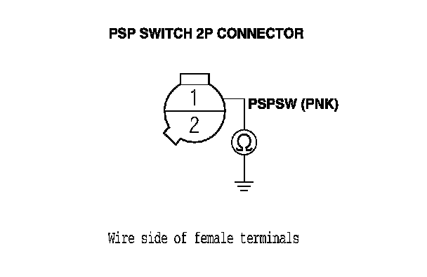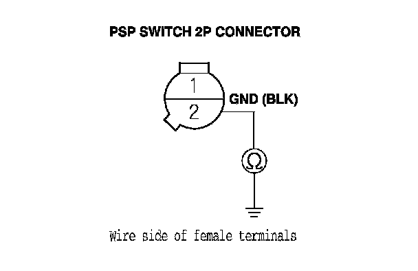 13. Check for continuity between PSP switch 2P connector terminal No. 1 and body ground.