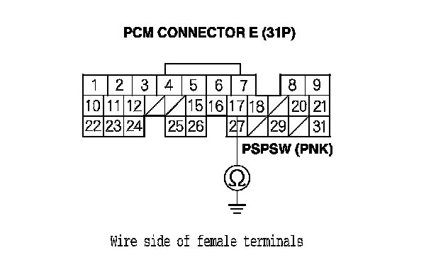 24. Check for continuity between PSP switch 2P connector terminal No. 2 and body ground.