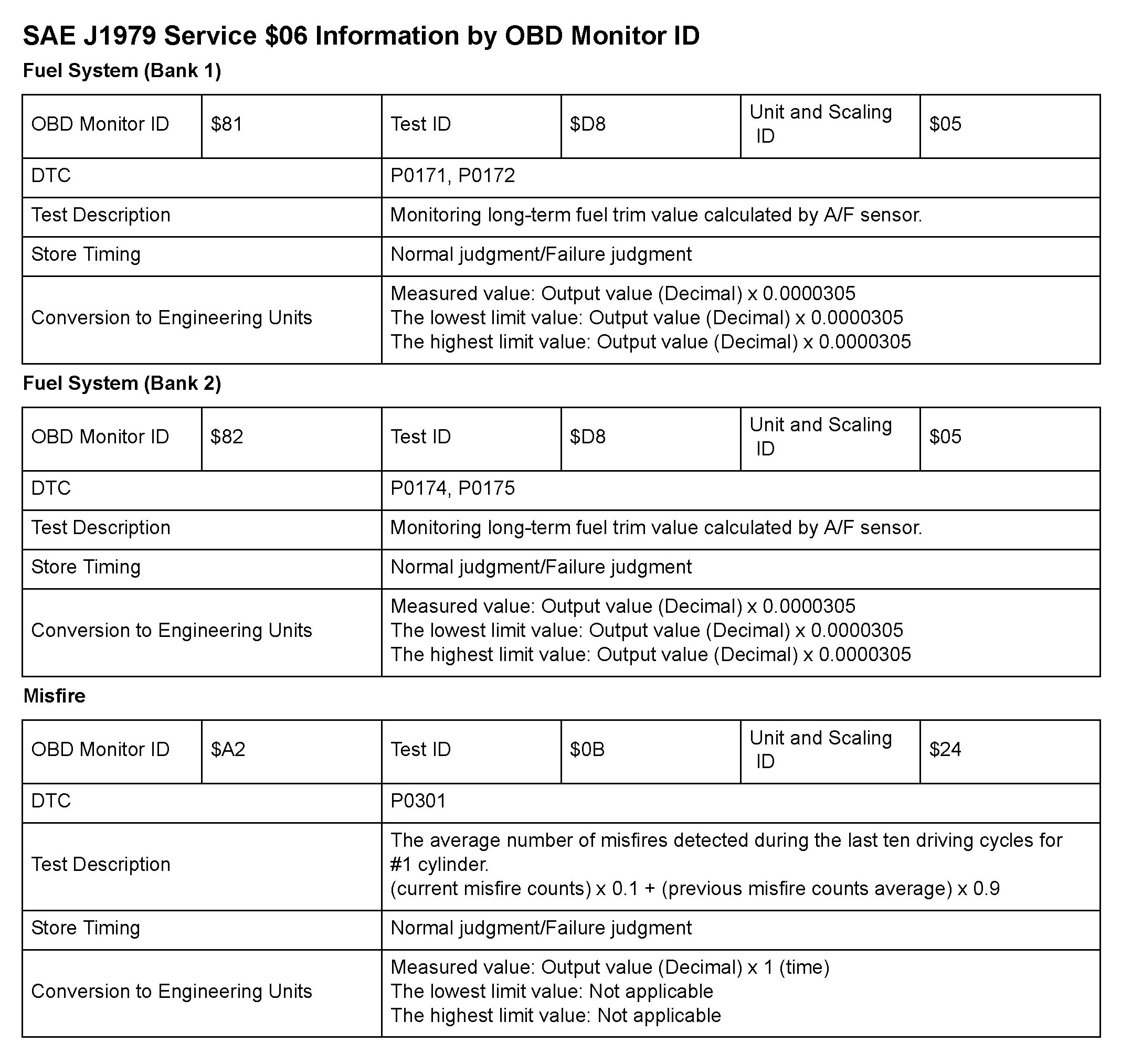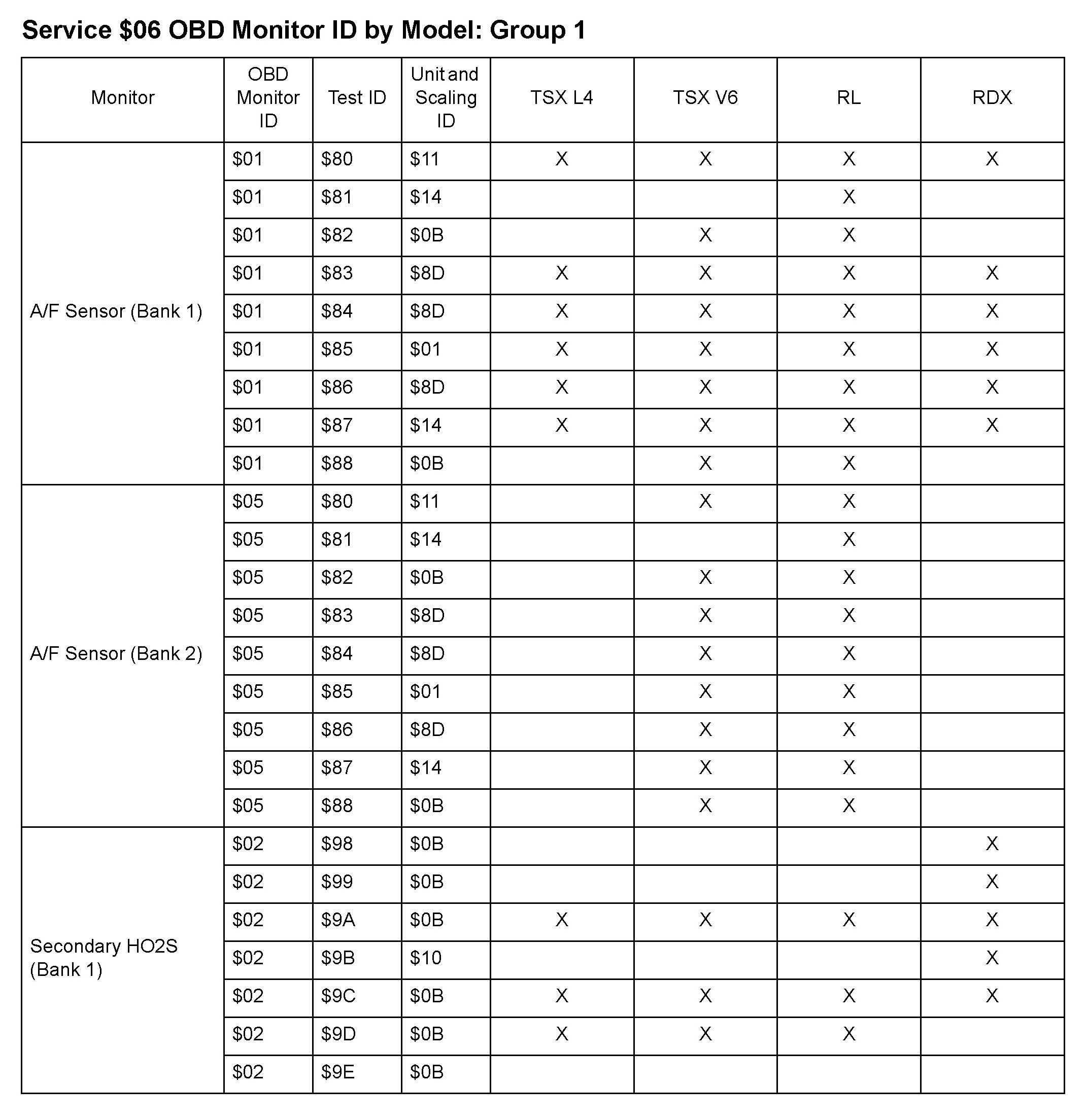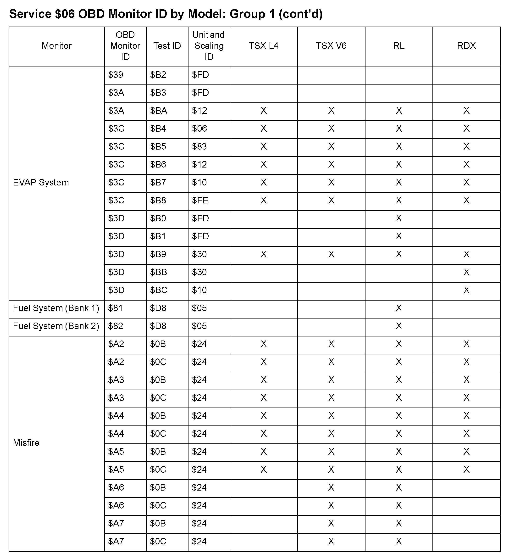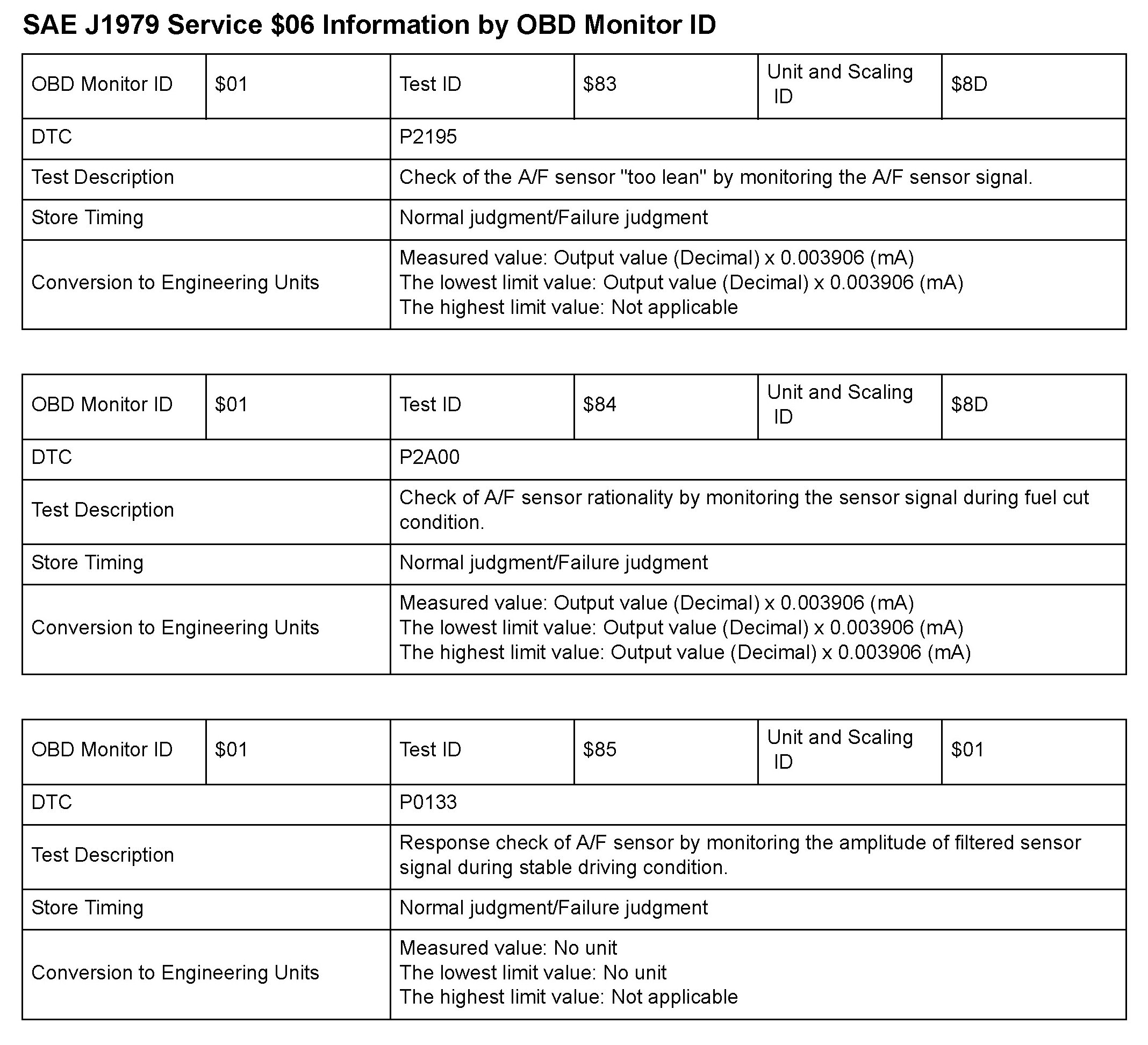 MODE 06 DATA CHARTS