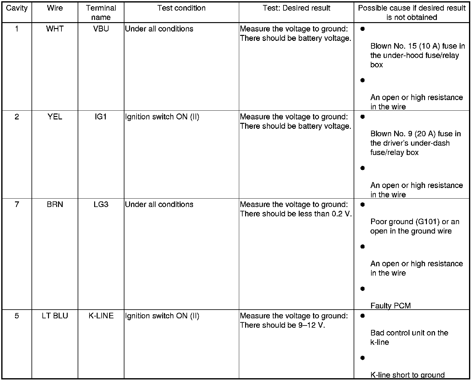 NOTE: Before testing, troubleshoot the multiplex integrated control unit first, using B-CAN System Diagnosis Test Mode A Troubleshooting - B-CAN System Diagnosis Test Mode A.