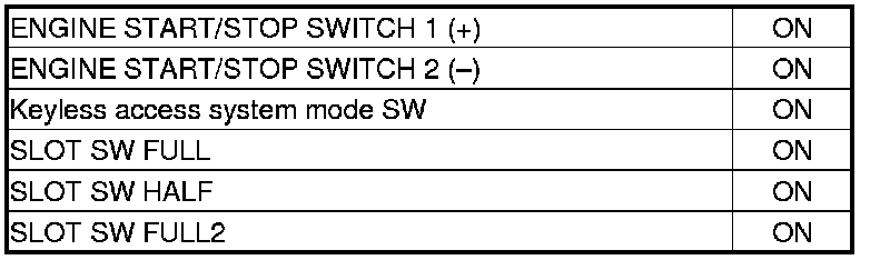 Go to the keyless access control unit input test Keyless Access System (Keyless Access Control Unit, Keyless Access Remote Slot Control Unit, and Power Control Unit) Input Test.�