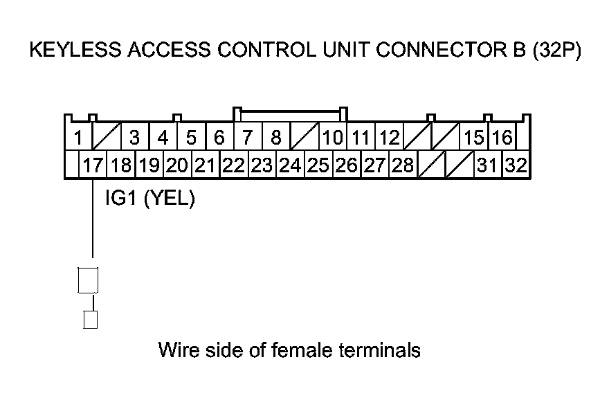 43. Measure the voltage between body ground and keyless access control unit connector B (32P) terminal No. 17.