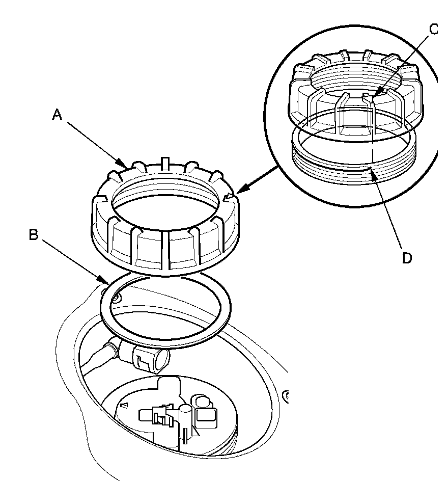 NOTE: To prevent a fuel leak, check the base gasket, visually or by hand, to make sure it is not pinched.