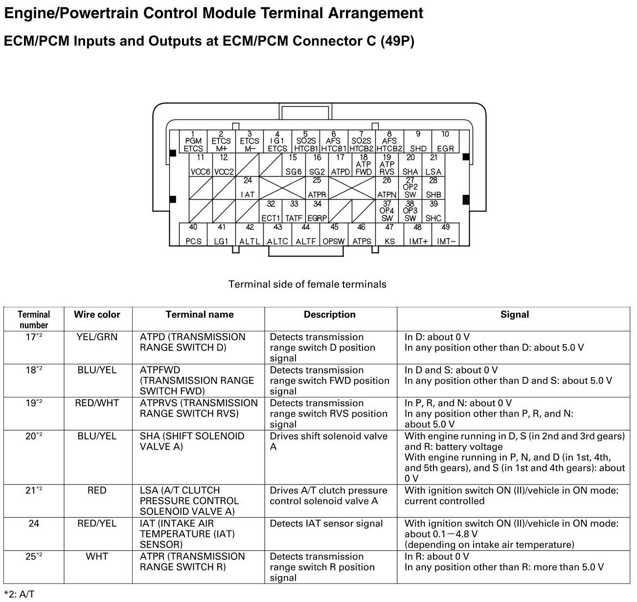 ECM/PCM Inputs and Outputs at Connector C