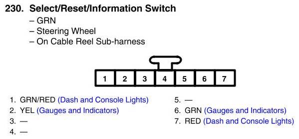 View 230 - Select/Reset/Information Switch Connector View