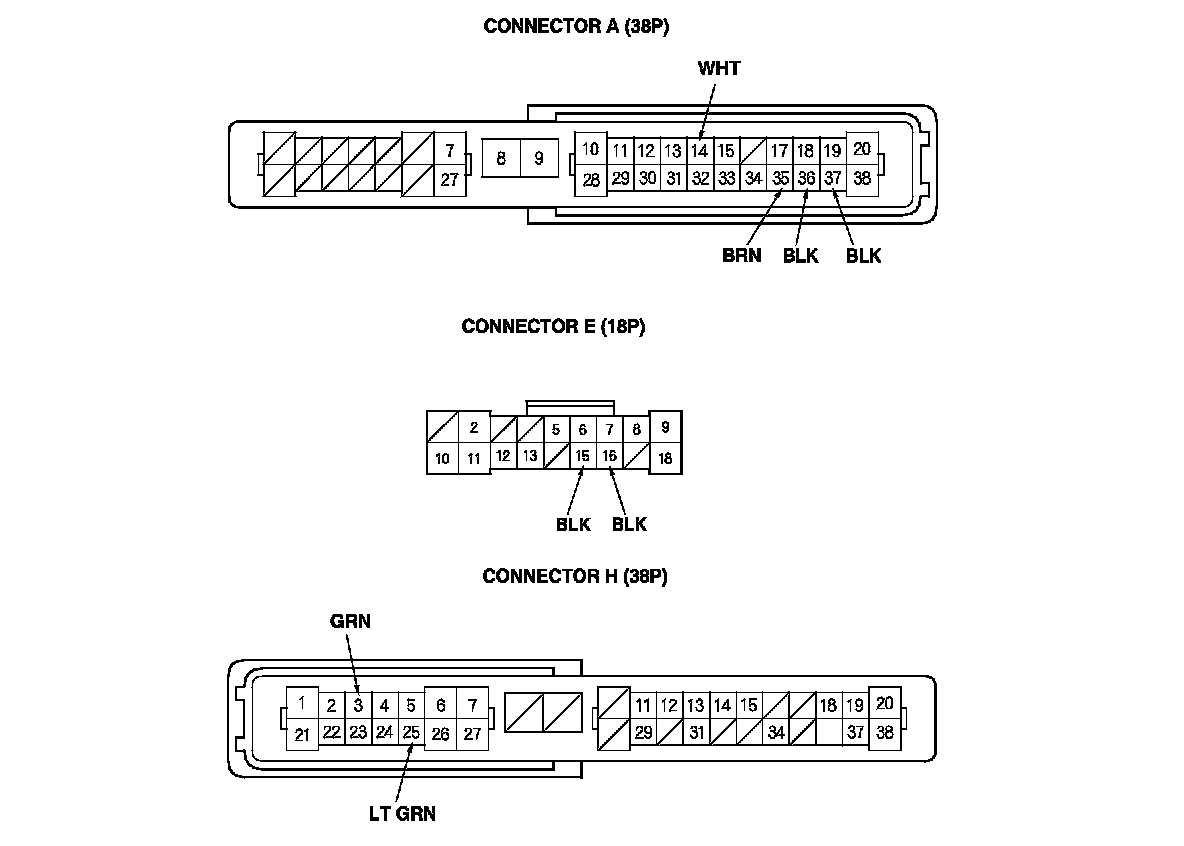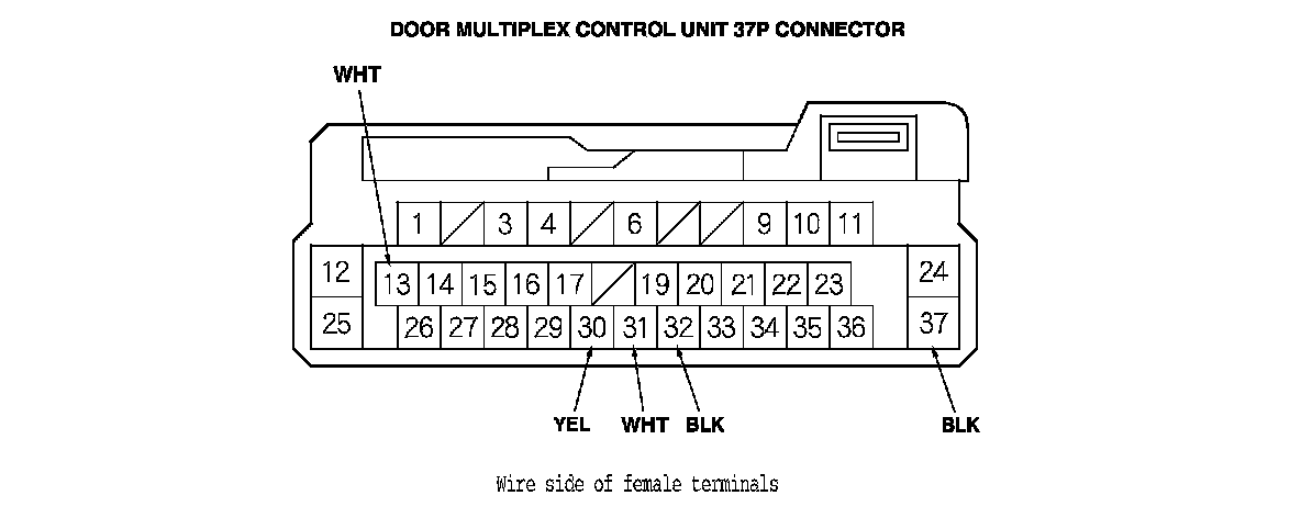 13. Reconnect the 37P connector to the door multiplex control unit, and do these input tests at the following connector.