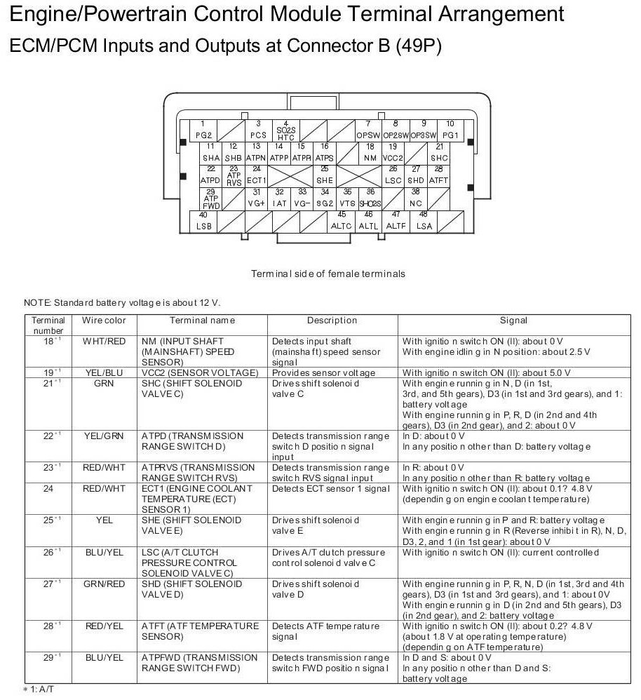 ECM/PCM Inputs and Outputs at Connector A