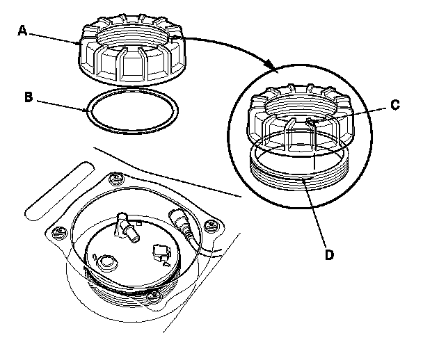 NOTE: To avoid a fuel leak, check the base gasket, visually or by hand, to make sure it is not pinched.