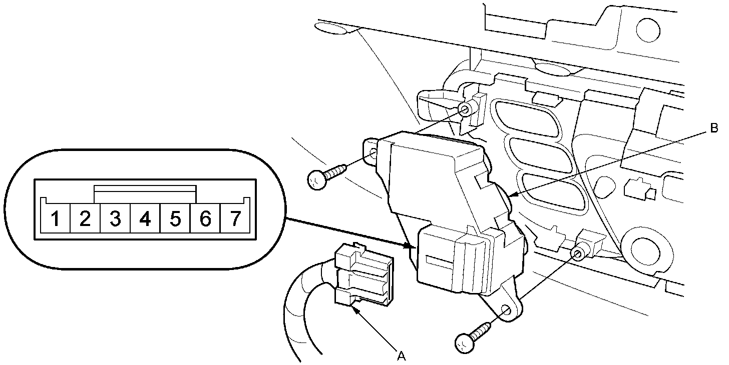 2. Disconnect the 7P connector (A) from the driver's position memory switch (B).