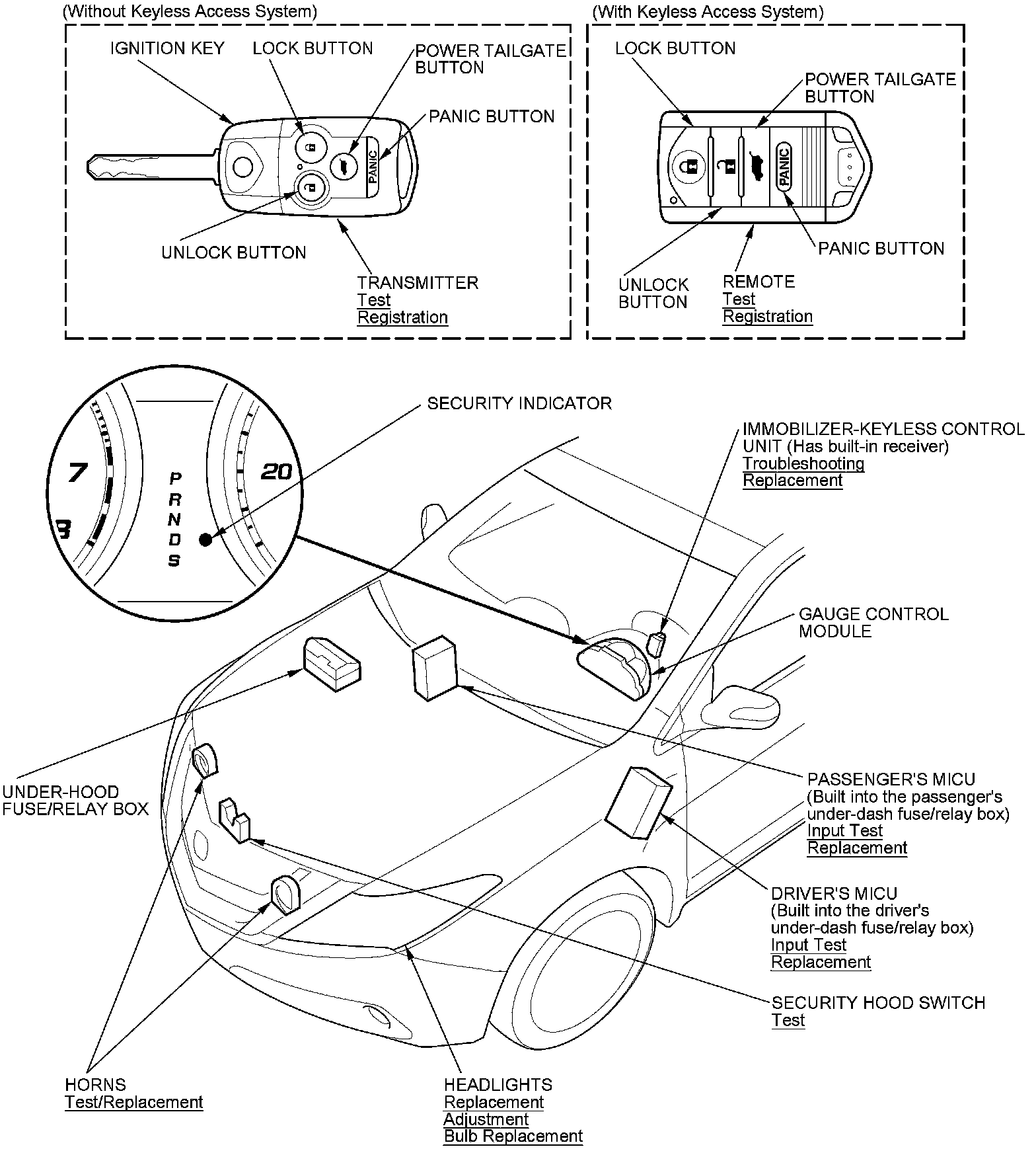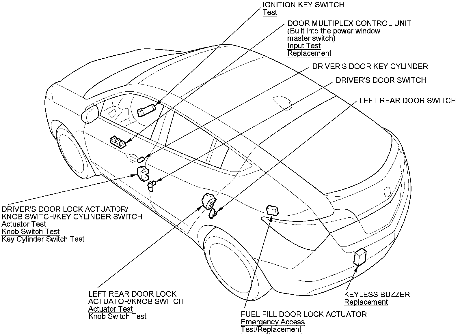 Keyless/Power Door Locks/Security System Component Location Index