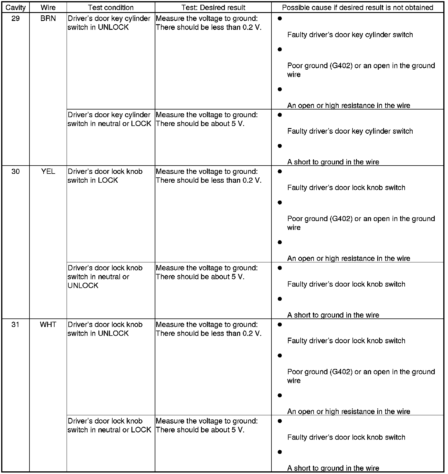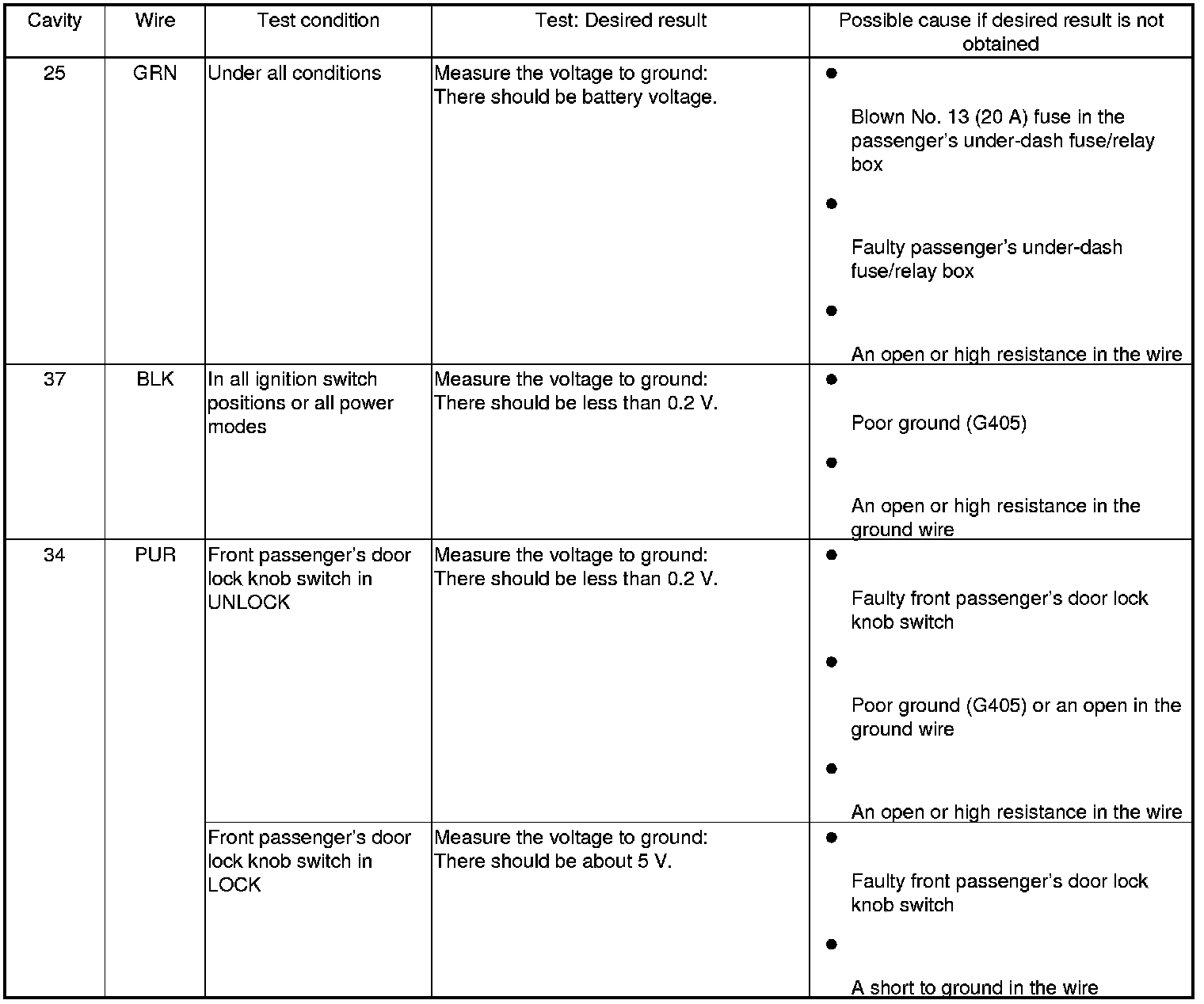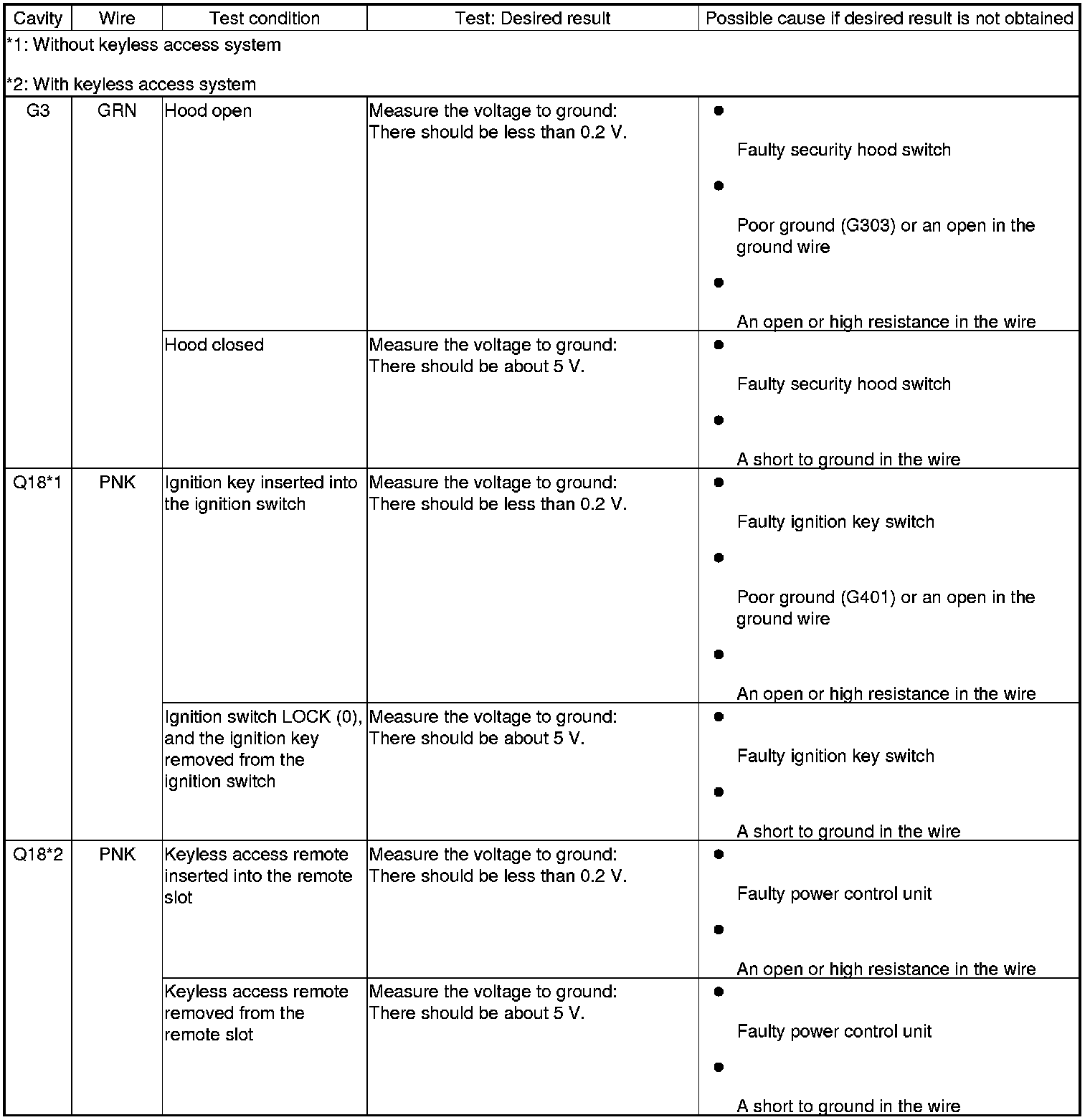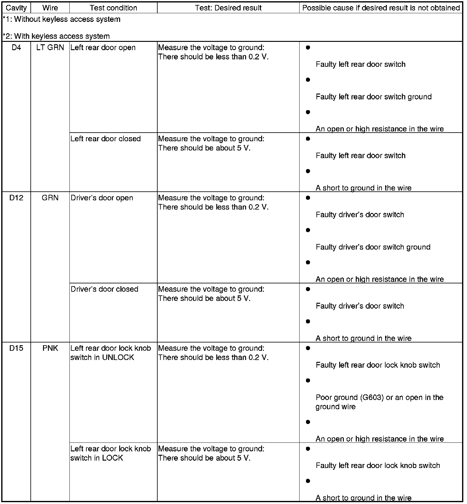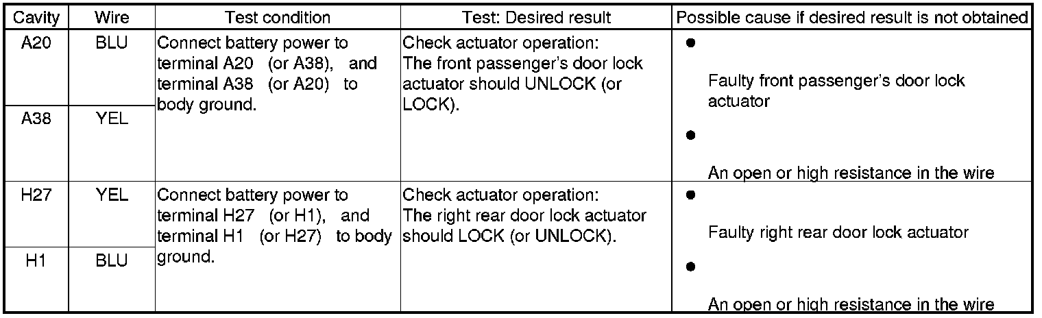 Keyless/Power Door Locks/Security System (Drivers/Passengers MICU, Door MCU, Front Passengers Window Switch) Input Test