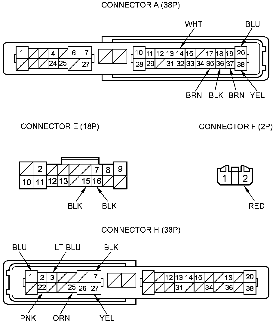 NOTE: All connector views are wire side of female terminals.