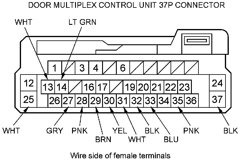 18. Reconnect the 37P connector to the door multiplex control unit, and do the following input tests: