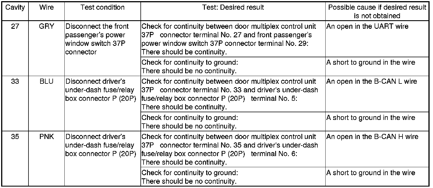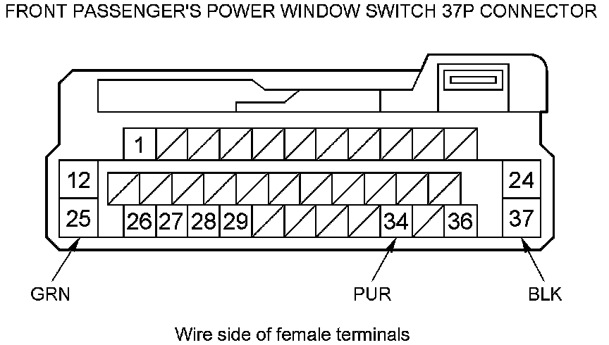 23. Reconnect the 37P connector to the front passenger's power window switch, and do the following input tests: