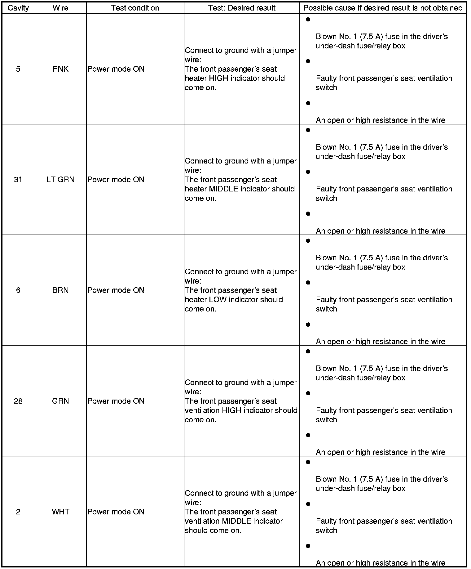 NOTE: Before testing, check the No. 2-4 (AS F/B OPTION) (40 A) fuse in the under-hood fuse box, the No. 16 (7.5 A) fuse in the driver's under-dash fuse/relay box, and the No. 19 (20 A) fuse in the passenger's under-dash fuse/relay box.