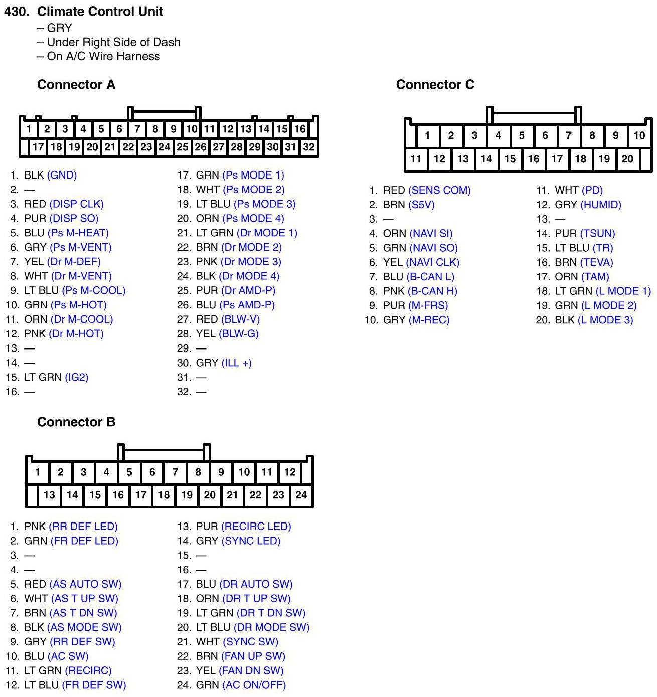 Climate Control Unit Connector View