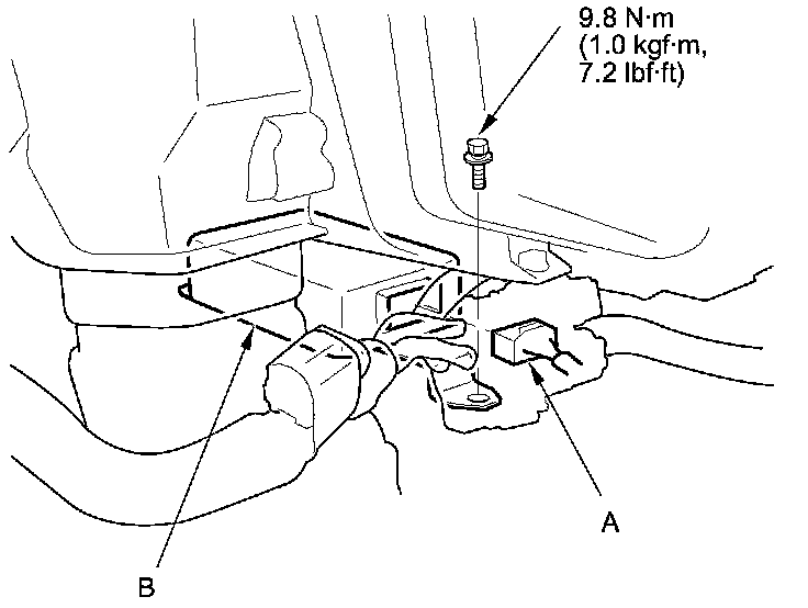 4. Remove the mounting bolt, then pull out the ACC unit (B) from the passenger's side.