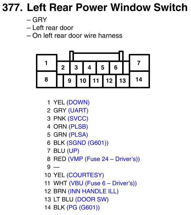 Left Rear Power Window Switch Connector View