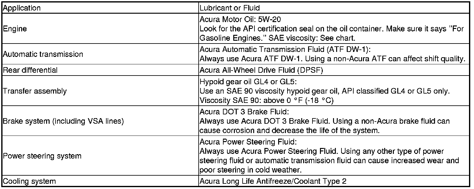 Home >> Acura >> 2011 >> RL V6-3.7L >> Repair and Diagnosis >> Maintenance >> Fluids >> Specifications