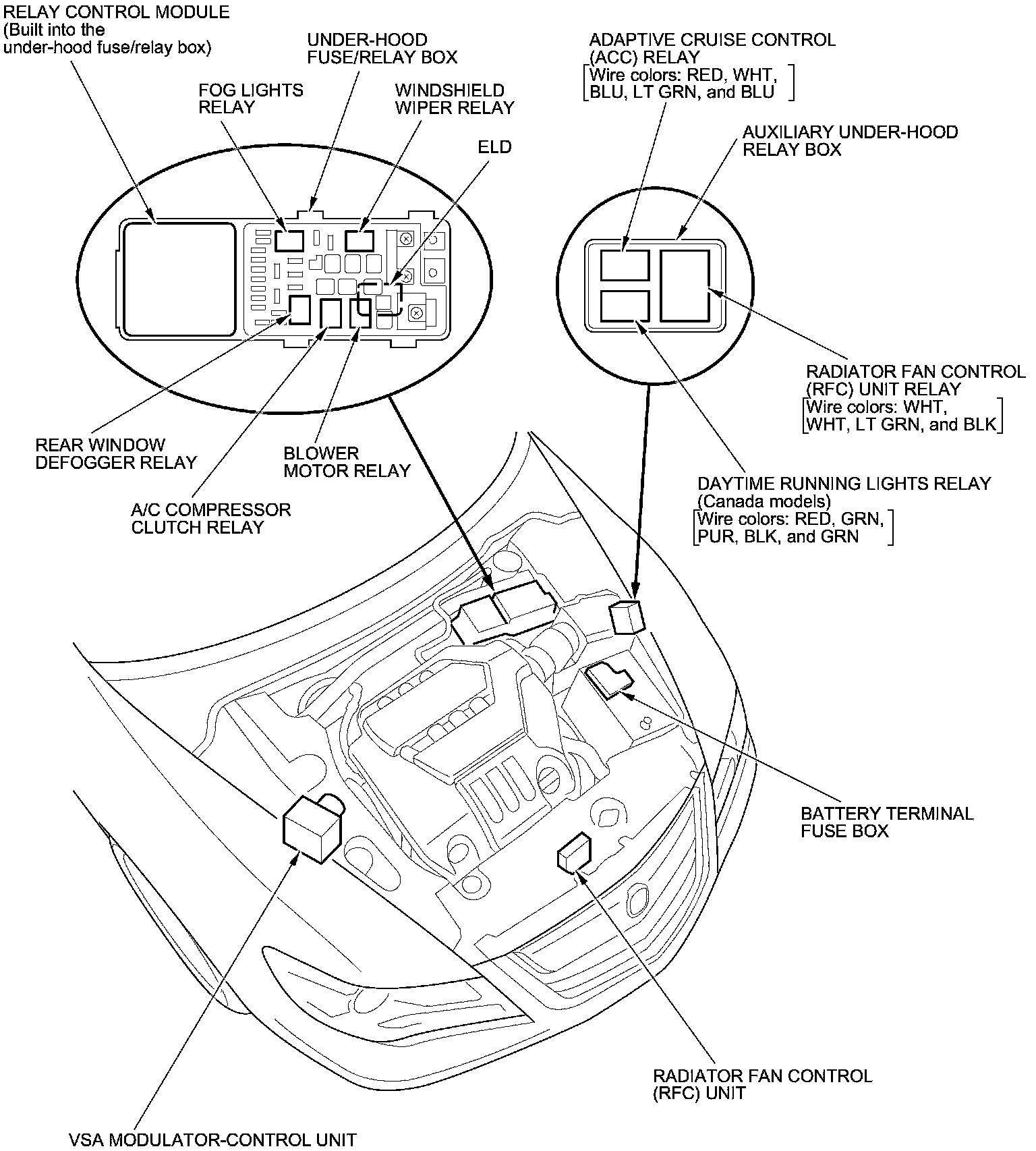 Relay and Control Unit Locations - Engine Compartment