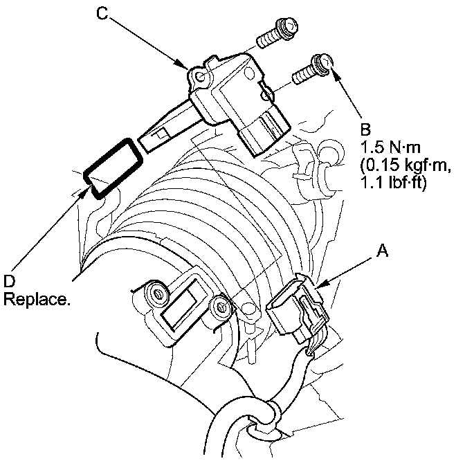 3. Remove the MAF sensor/IAT sensor (C).