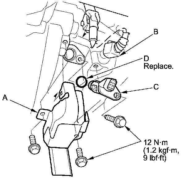 5. Install the parts in the reverse order of removal with a new O-ring (D).